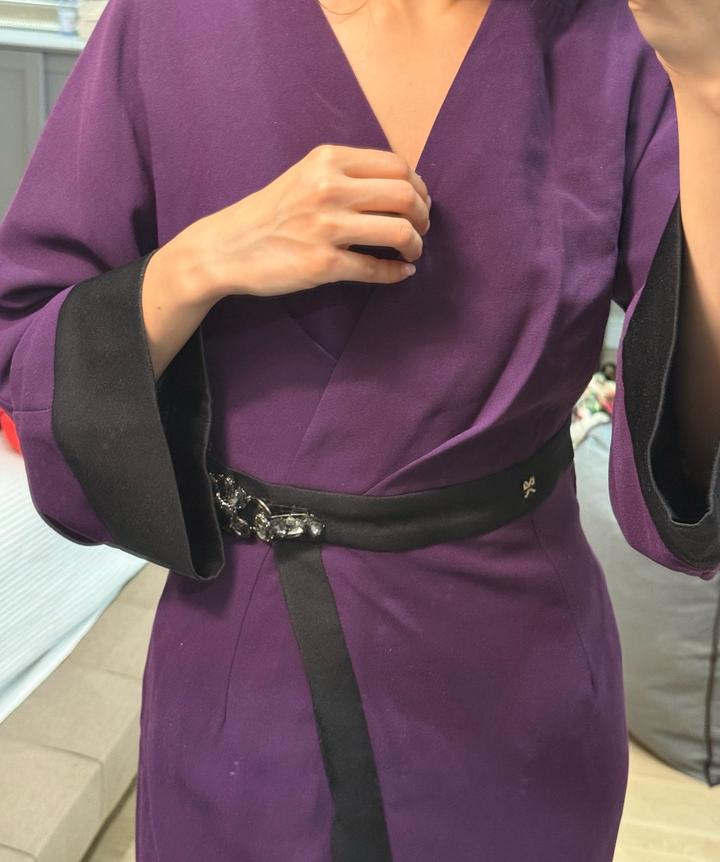 Фиолетовое платье как кимоно, отличное состояние, как новое, выход один раз. Размер подойдет на XS-S. Артикул: 576360