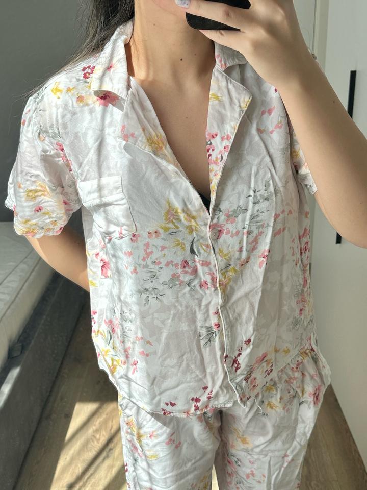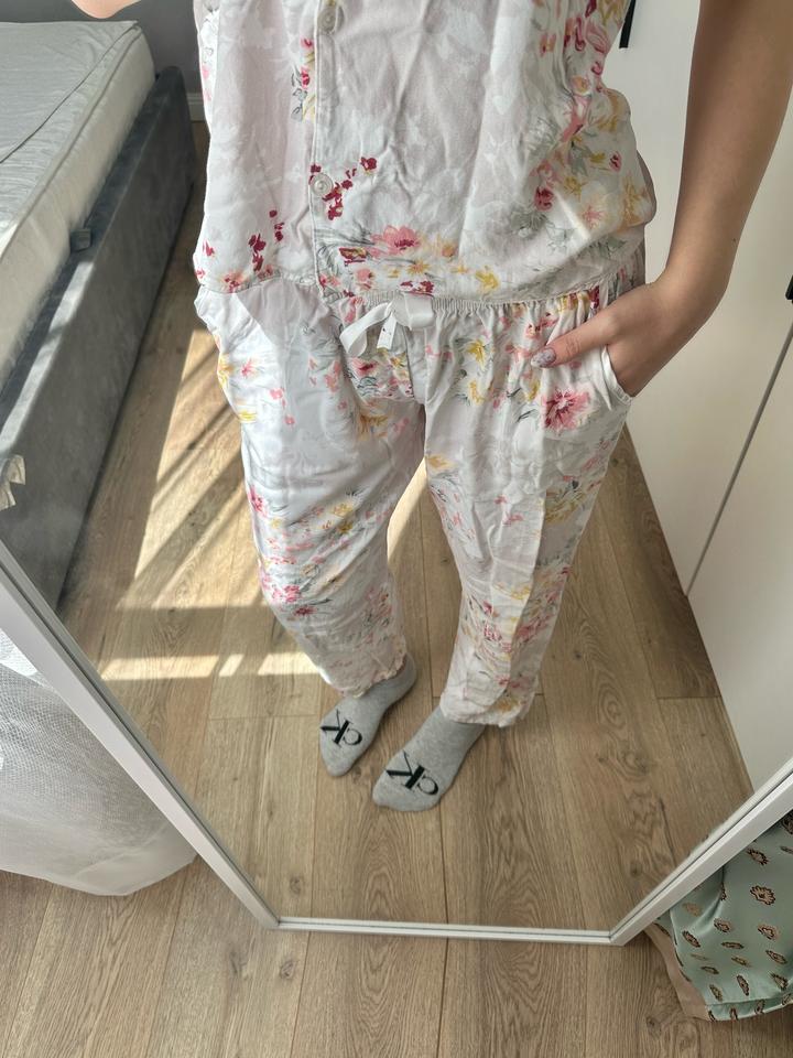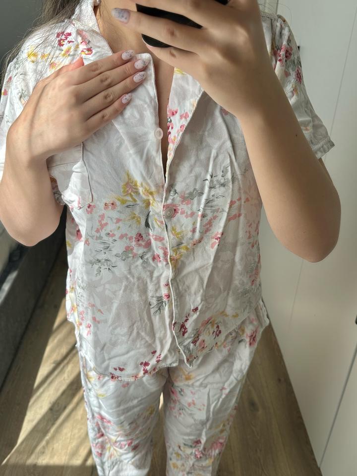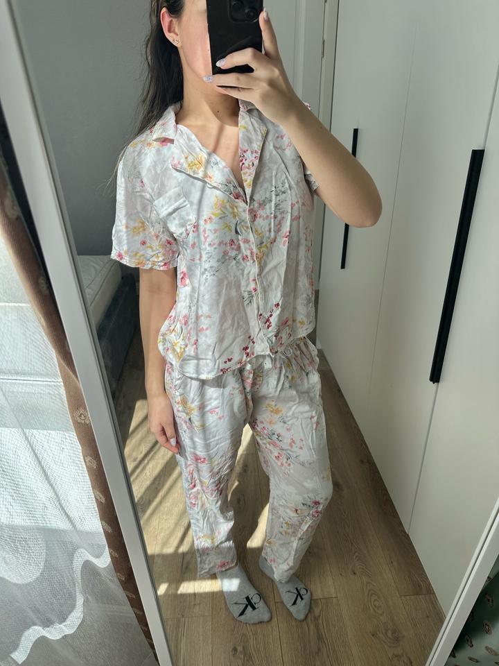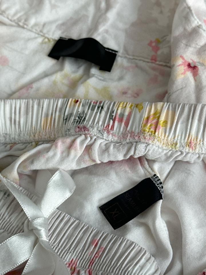 Двойка пижама, рубашка с кармашком, размер XL маломерит (у меня размер М) бренд Seamlife Штаны низкая посадка на резинке, бантик просто ленточка без затягивания, карманы есть Артикул: 576401