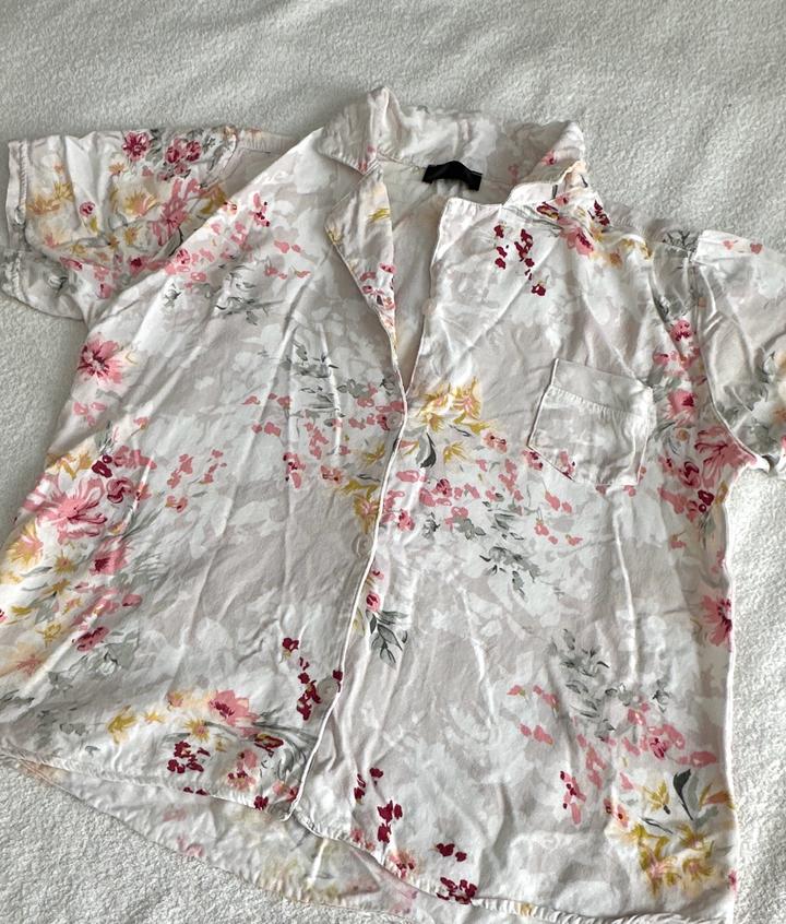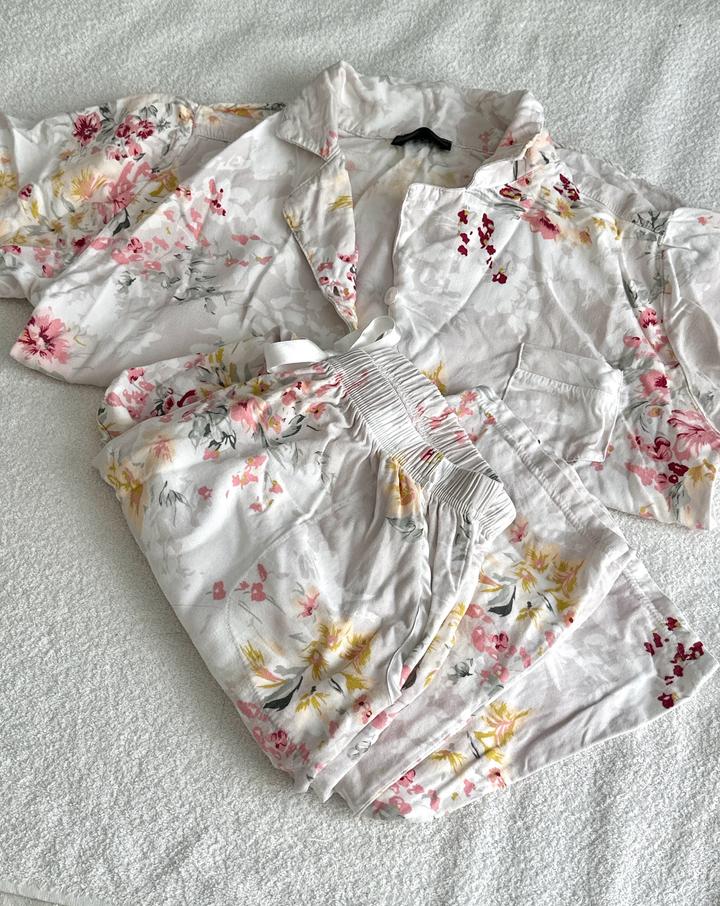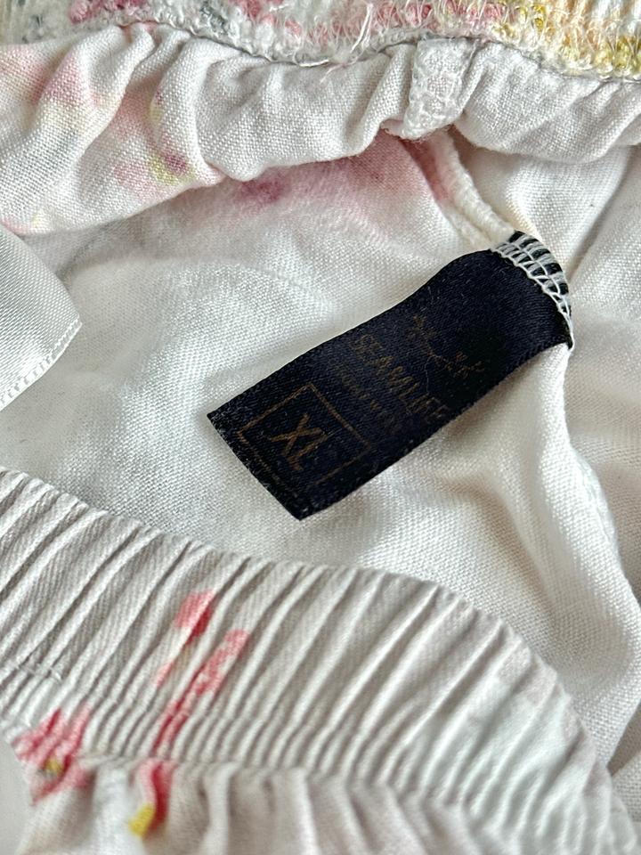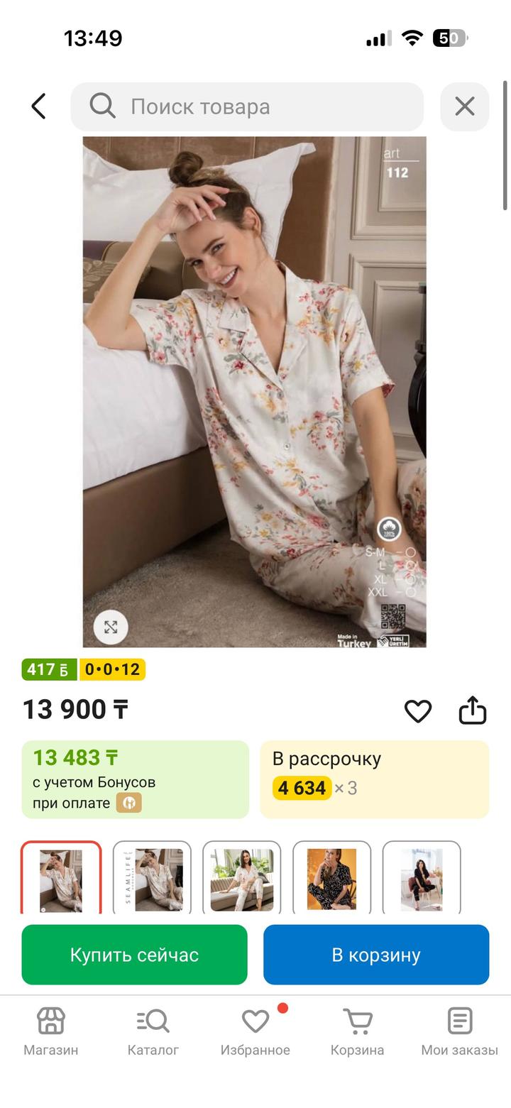 Двойка пижама, рубашка с кармашком, размер XL маломерит (у меня размер М) бренд Seamlife Штаны низкая посадка на резинке, бантик просто ленточка без затягивания, карманы есть Артикул: 576401