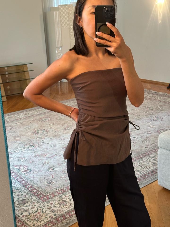 Топ-бюстье Zara с драпировкой и регулируемыми завязками по бокам, мягкая струящаяся ткань, размер S, в отличном состоянии, одевалось один раз Артикул: 576472