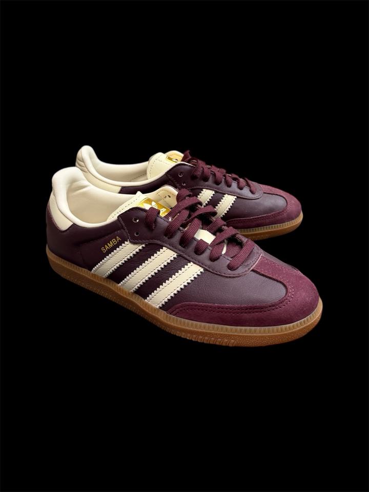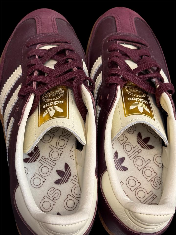 Оригинальные Samba от Adidas в глубоком бордовом цвете. Новые, без коробки, только были померяны дома и поставлены в гардероб, актуальное состояние на фото. Кожа. Артикул: 576486
