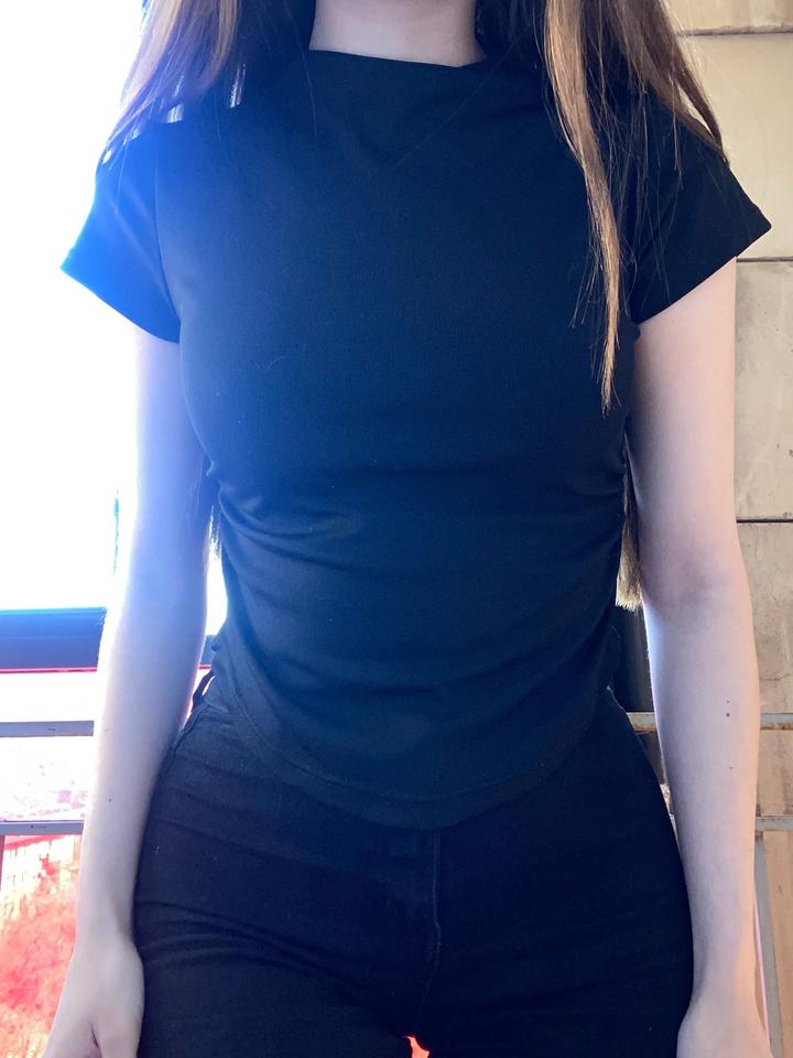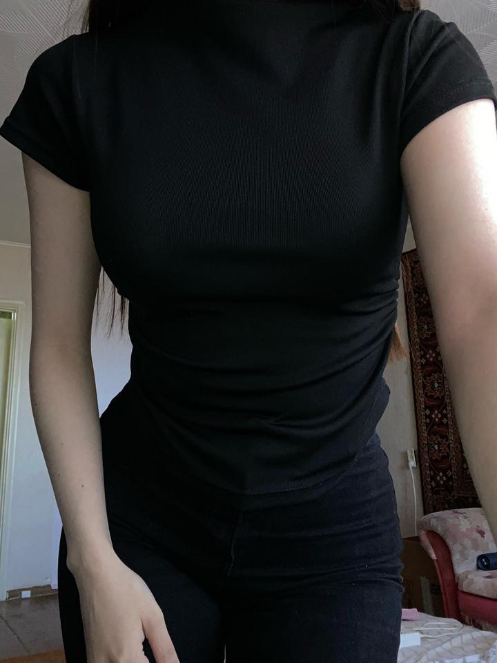 Обтягивающая футболка, черная Точный размер не знаю. XS-M Хорошо тянется, не жарко Артикул: 576487