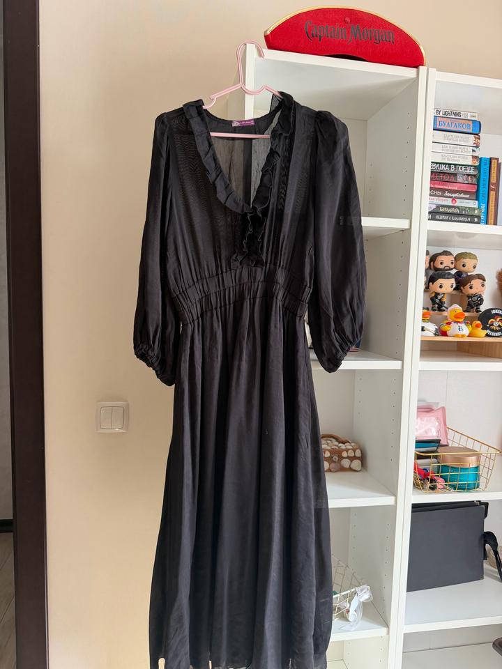 Платье выполнено из льна. Легкое, идеальное на лето. Длина миди, покупалось в официальном магазине и не носилось. Бирки не осталось. Размер S Артикул: 576543