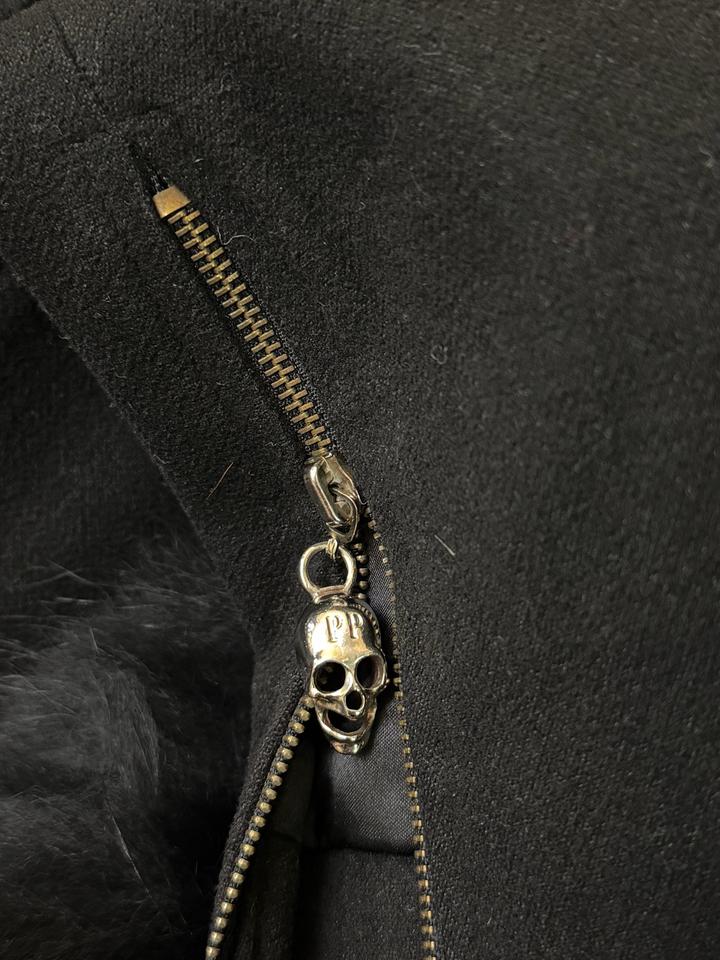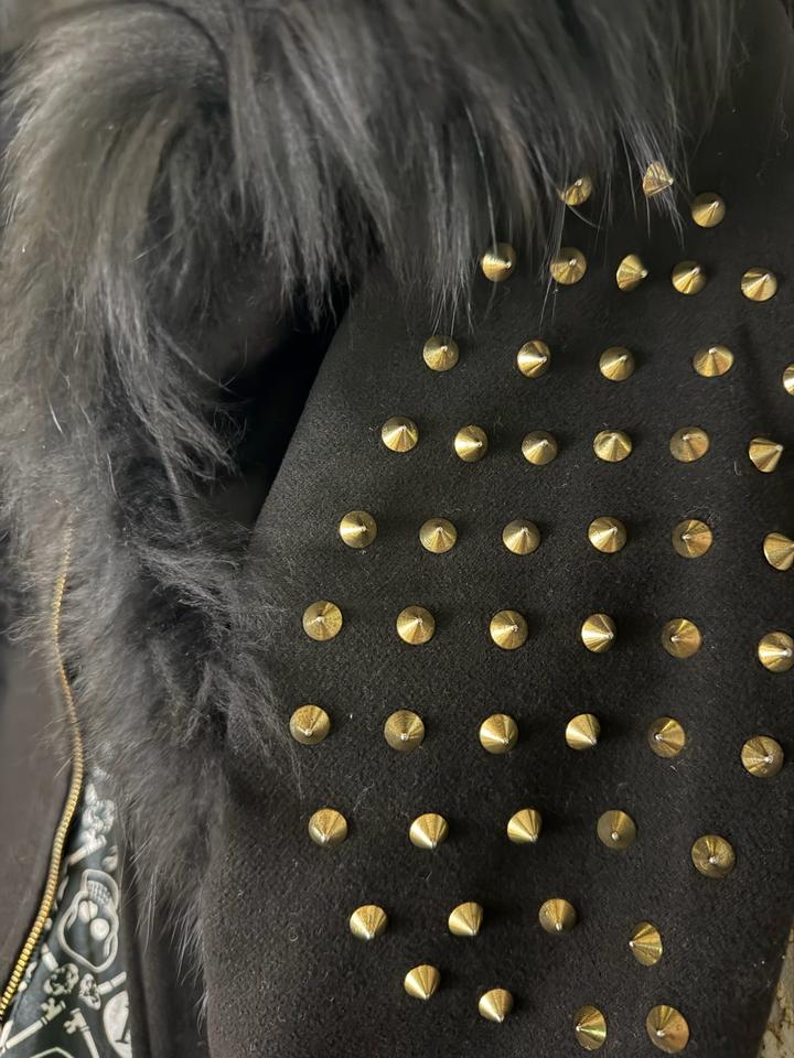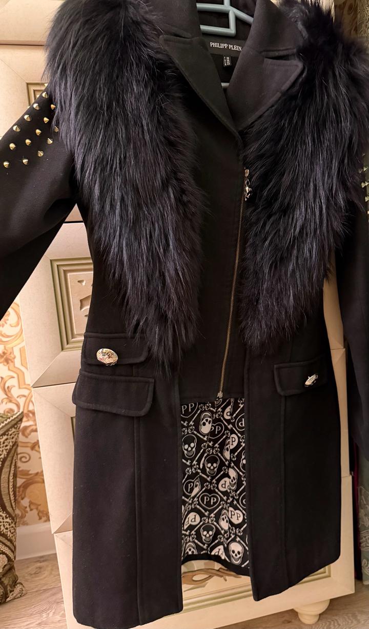 Пальто philipp plein. Мех натуральный писец. Размер М(38). Интересный модель, спереди укороченная. Декоративные шипы Артикул: 576544