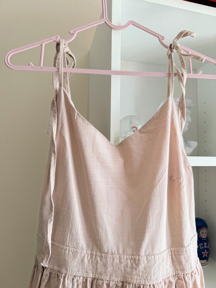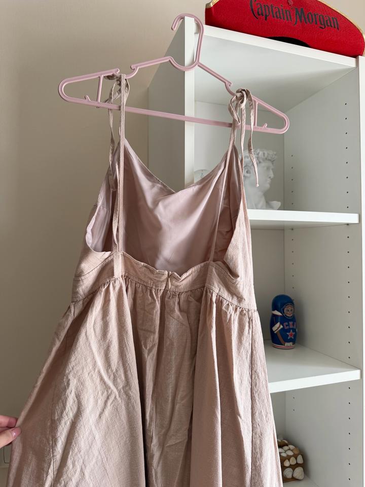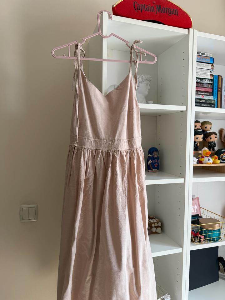 Бежевый сарафан из 100% хлопка льняной фактуры. В длине миди, надевался 1 раз, состояние нового. Спина отрытая, бретельки регулируются. Артикул: 576552