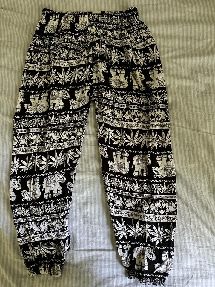 Летние брюки из легкой ткани на резинке. Покупали в Дубае в ТРЦ, не подошел размер. Новые, подойдут на низкий рост Артикул: 576574