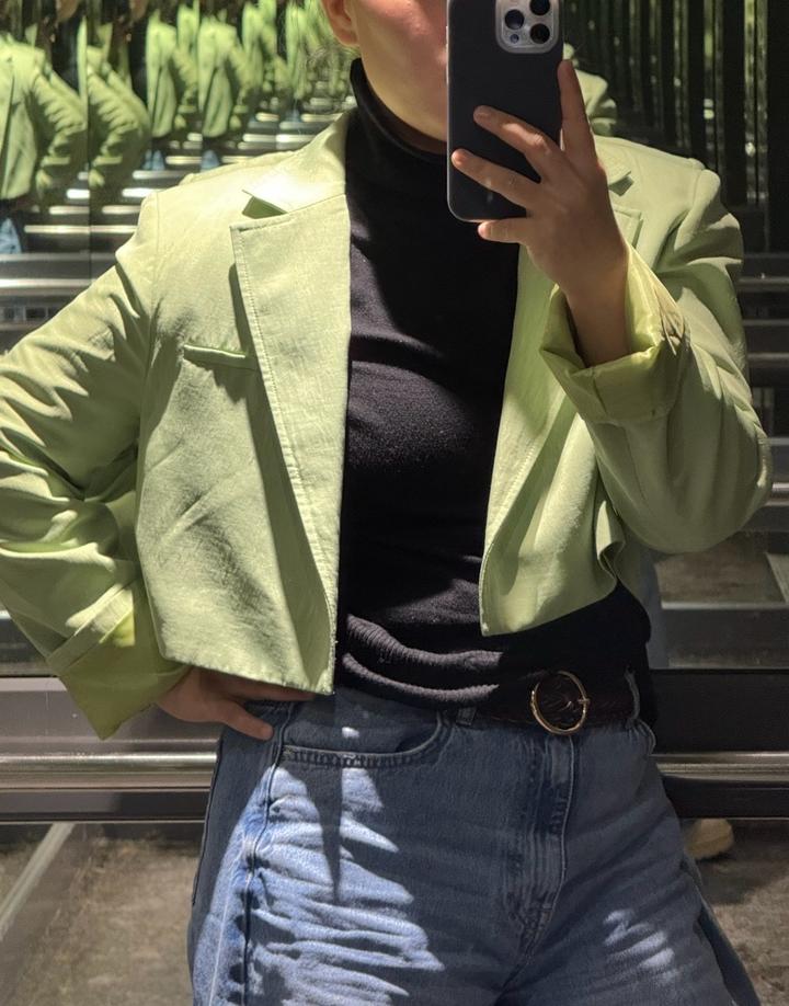 🧥 Куплен в Zara (ТРЦ MEGA Silk Way)💚 Короткий пиджак, зелёный цвет✨ Стильный и сM