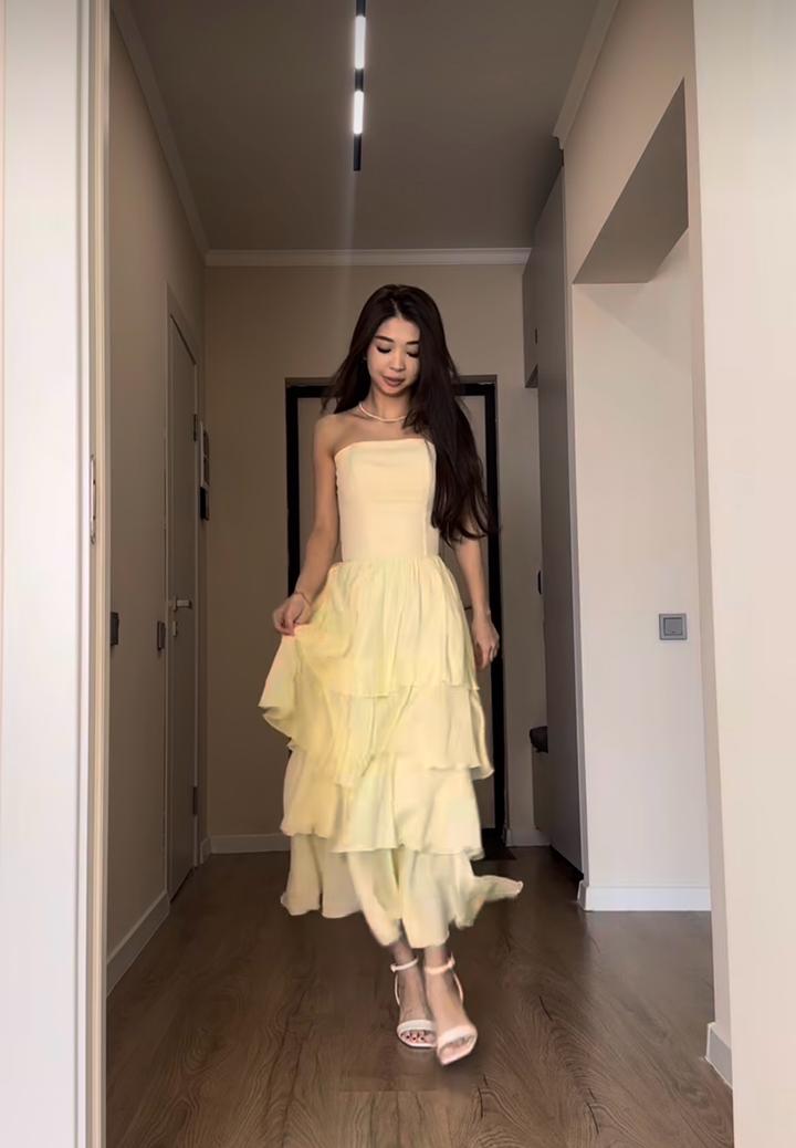 Желтое нежное платье, с накидкой. Размер xs/s Артикул: 576633