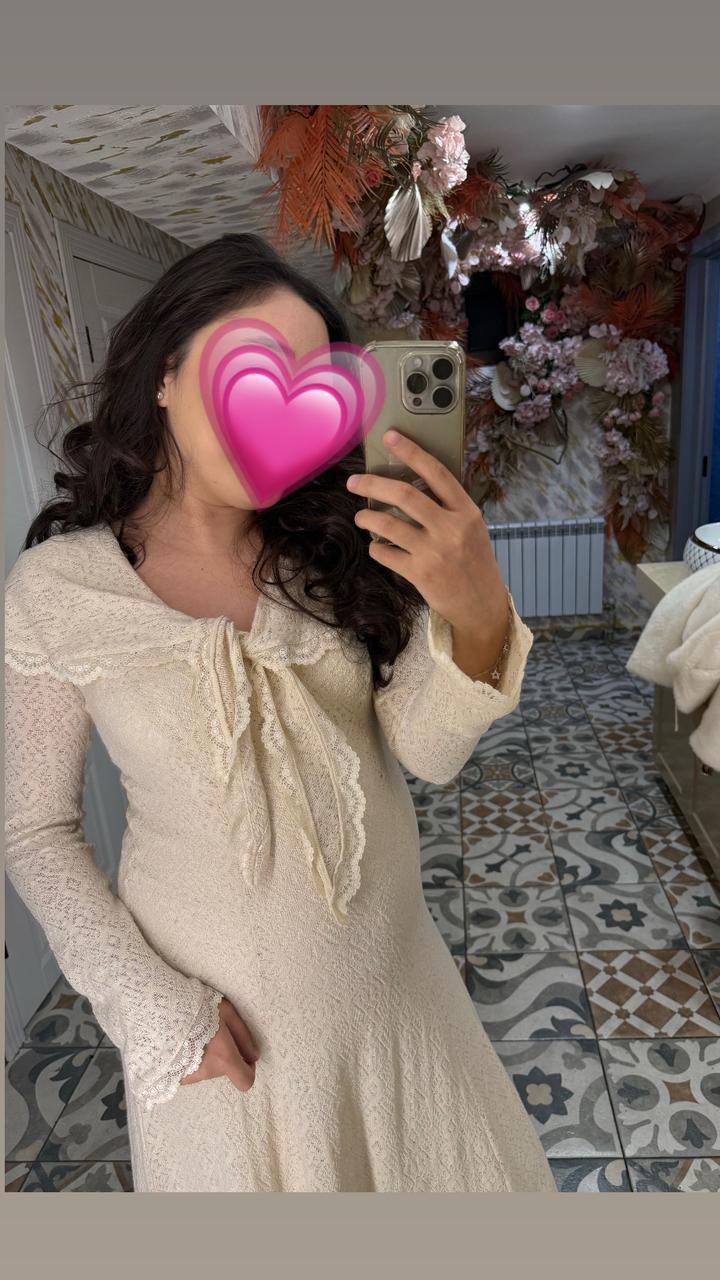 Очень нежное и элегантное платье с кружевной фактурой. Красивый воротник с кружевной отделкой и декоративным бантом, длинные рукава с манжетами. Свободный женственный силуэт, комфортная посадка. Идеально подойдёт для фотосессии, праздника, прогулок, свиданий или особых случаев. Цвет: молочный / кремовый Состояние: отличное Размер: M Бренд: Lime Цена: 15.000тг Артикул: 576685