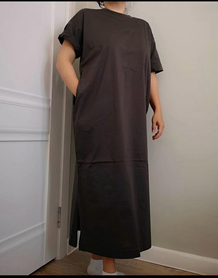Новое платье -футболка свободного кроя, оверсайз без этикетки. Ткань плотный 100% хлопок. Цвет графит. Размер S, но большемерит на М. Артикул: 576706