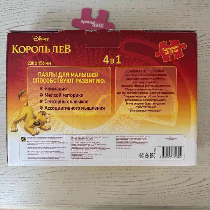 Пазлы "Король Лев" 4 картинки Артикул: 576729