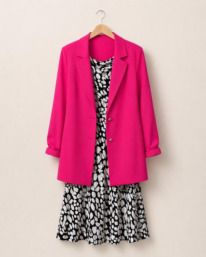 Проивоздство Турция. Легкое платье с принтом и розовый пиджак Артикул: 576751