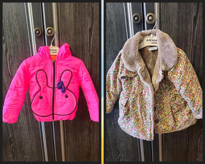 2 куртки на девочку Коричневая потеплее на рост 86 Розовая потоньше и немного меньше, написан на ней 28 рр 5000 за 2 куртки Артикул: 576757