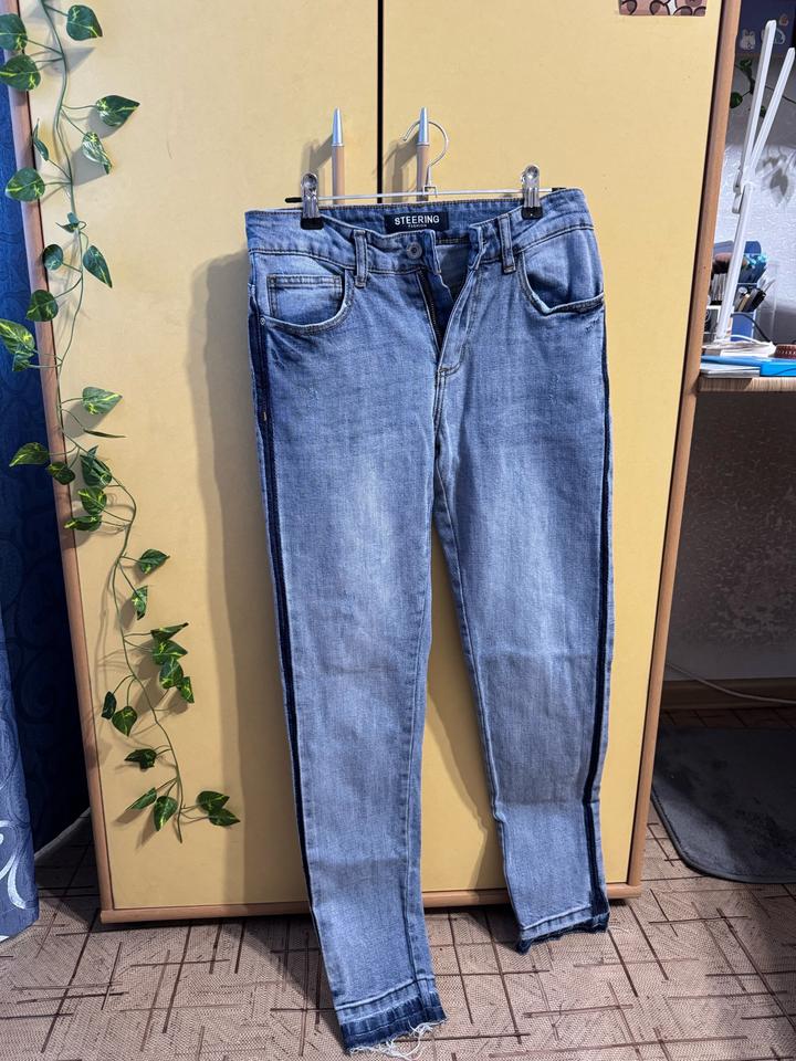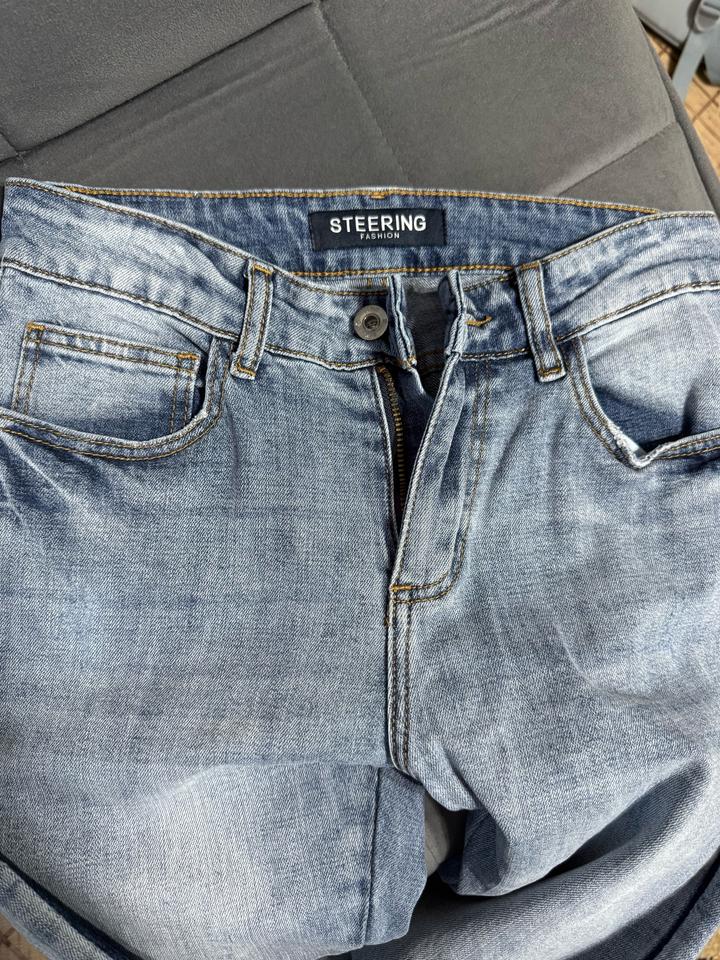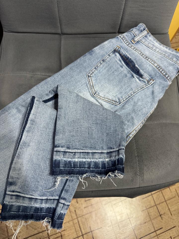 Светло-голубые джинсы с лампасами и необработанным краемXS