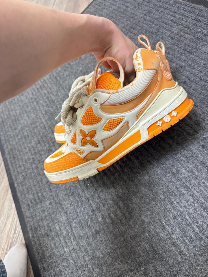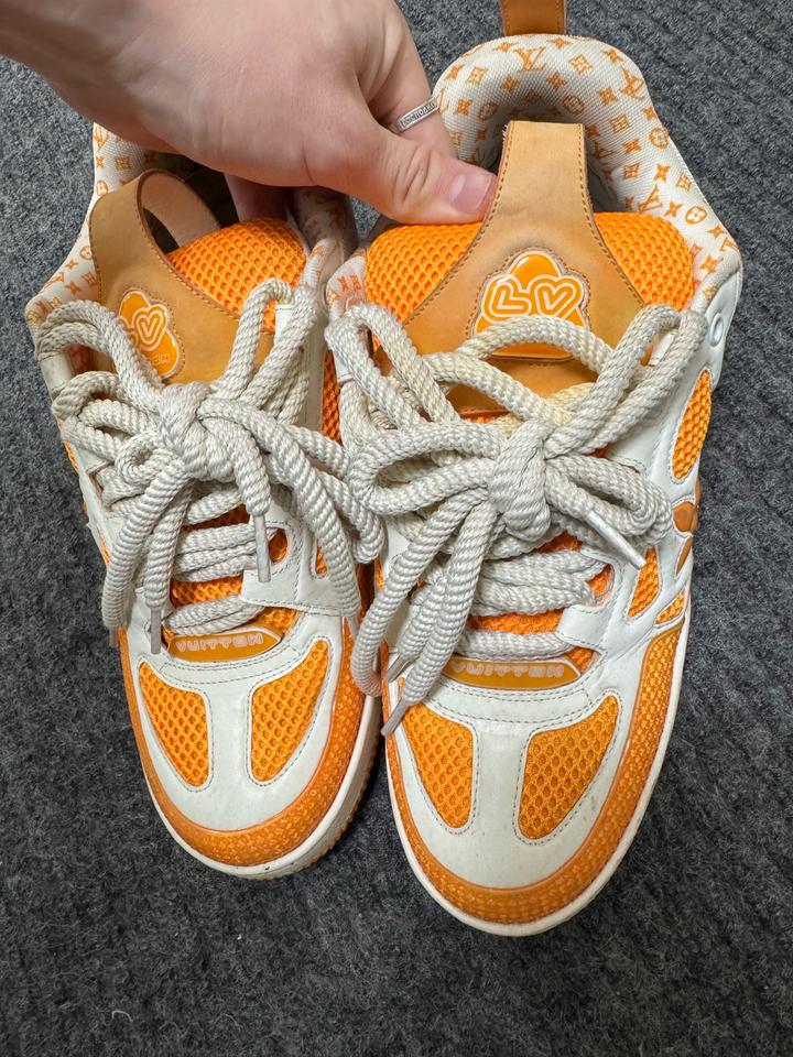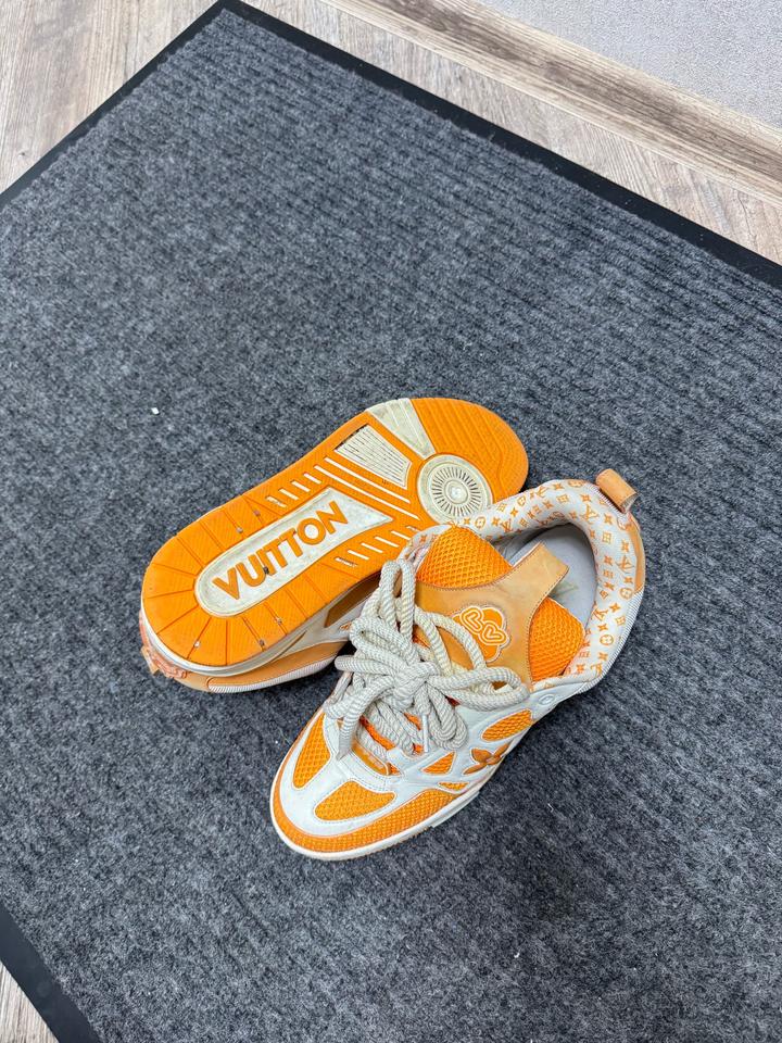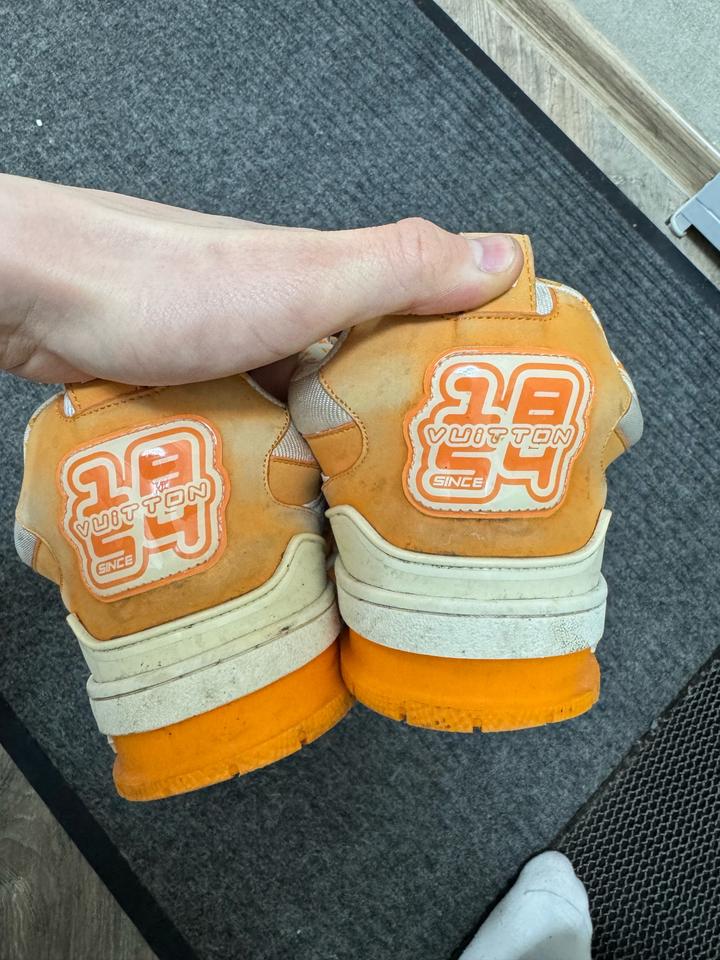 ораньжевые кроссовки луи виттон покупались новыми в аутлете , ньюанс в том что простояли на солнце около 5 месяцев и есть выцветы отсюда и цена Артикул: 576770