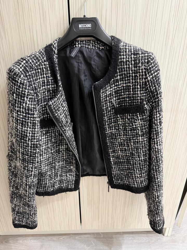 Продам стильный жакет Naf Naf, размер 40 Красивый укороченный жакет в стиле Chanel из фактурной твидовой ткани. Черно-белая расцветка, аккуратная отделка, застежка на молнии — смотрится очень эффектно и женственно. Отлично сочетается с базовыми вещами и легко собирает элегантный образ. Размер: 40 Состояние: хорошее Состав: 59% полиэстер, 24% хлопок, 15% акрил Идеален на весну, осень, в офис, на встречи и повседневные выходы. Артикул: 576802