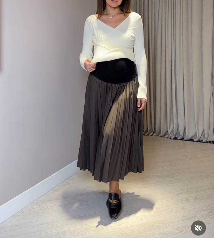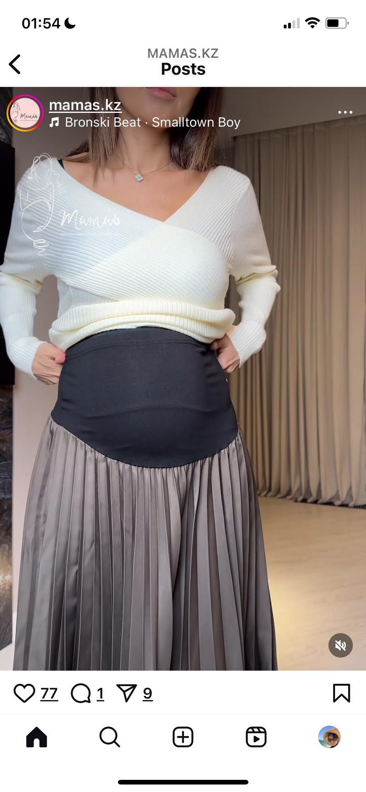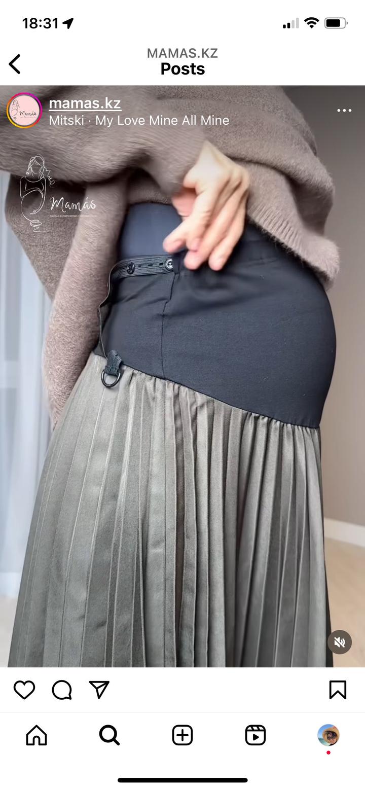 Супер комфортная юбка для беременных. Резинка мягкая, не давит. Надевала на 8 месяце один раз на корпоратив. Покупала за 20 тыс тг в классном магазине Mamas Артикул: 576879