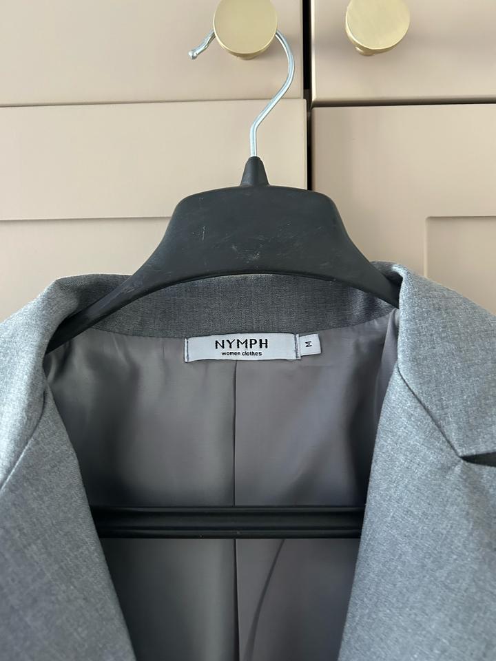 Базовый пиджак казахстанского Бренда Nymph После химчистки в отличном состоянии носила нечасто недолго. Пятен, повреждений и так далее нет. Свободный Оверсайз крой. Артикул: 576945