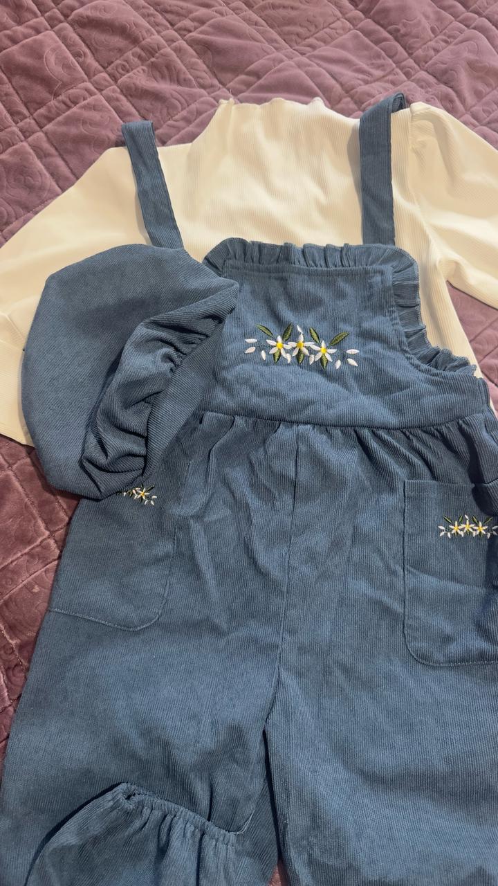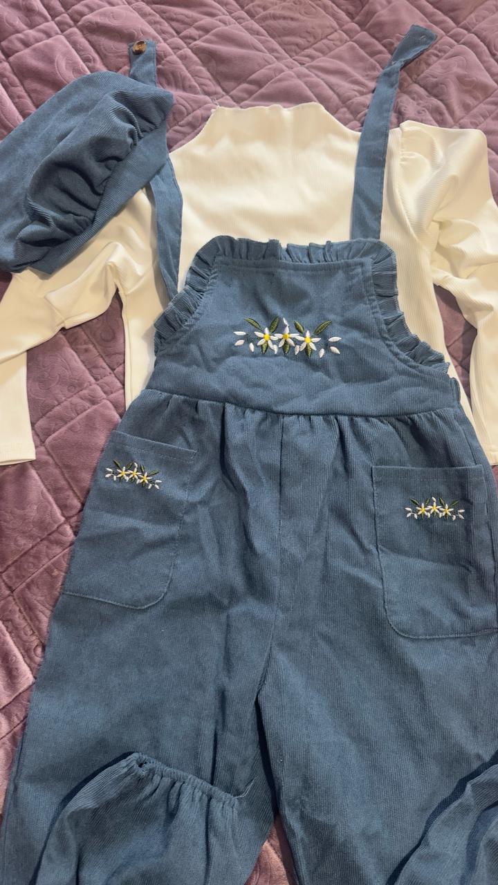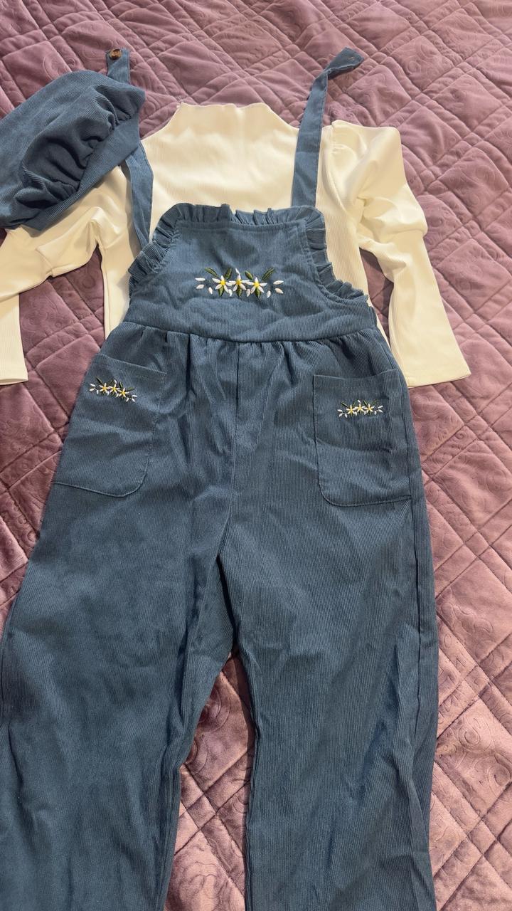 Эффектный комплект-тройка: вельветовый комбинезон, водолазка и берет. Артикул: 577012