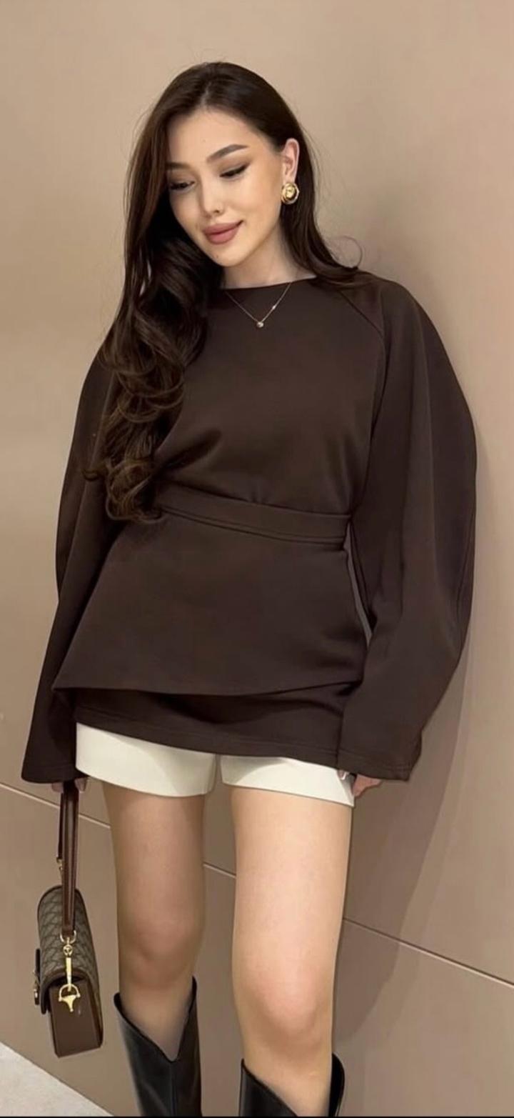 Коричневый кофта с баскойL