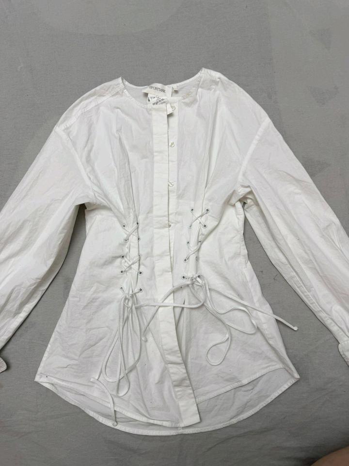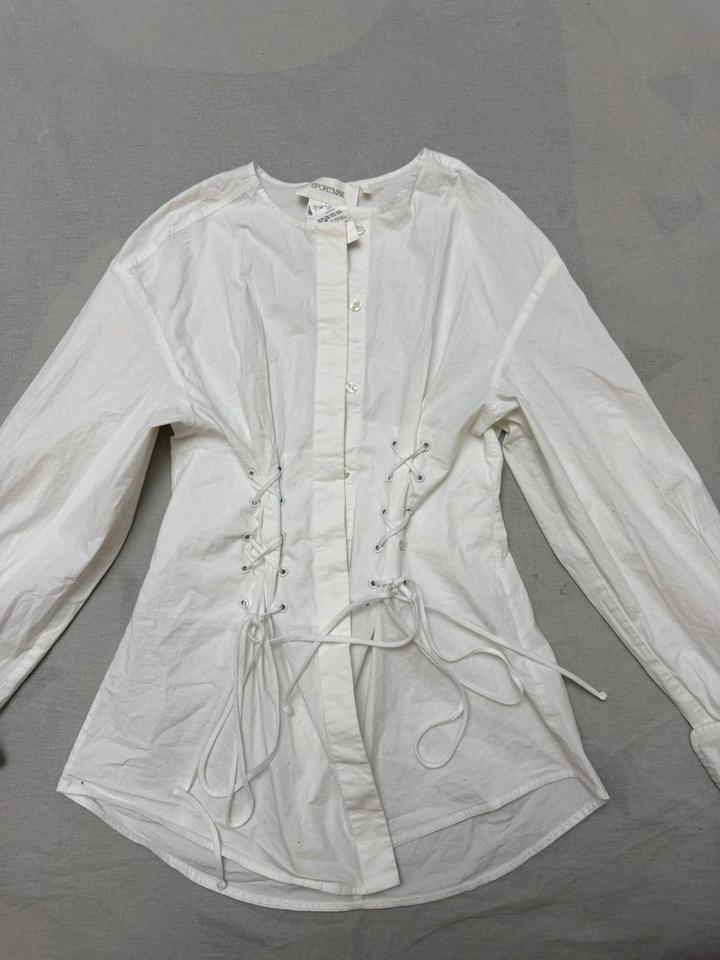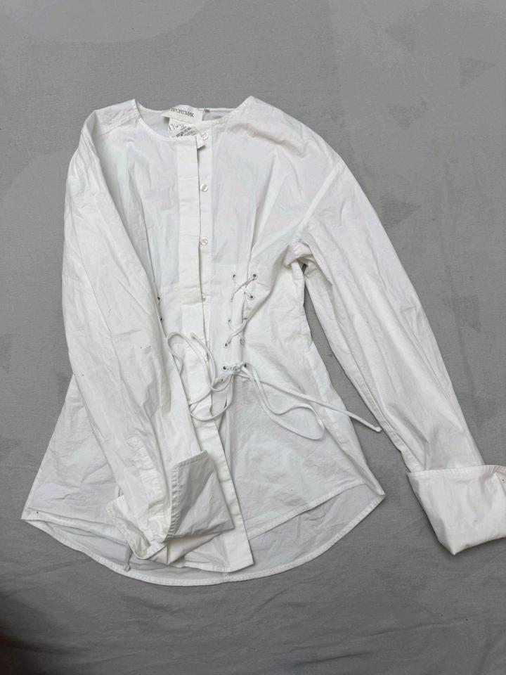 Рубашка от примеальнного бренда 💯 оригинал, на официальном сайте она стоит больше 200000 тенге, размер S но за счёт шнуровок можно регулировать, подойдёт до 44 переходящий 46 размер Артикул: 577131