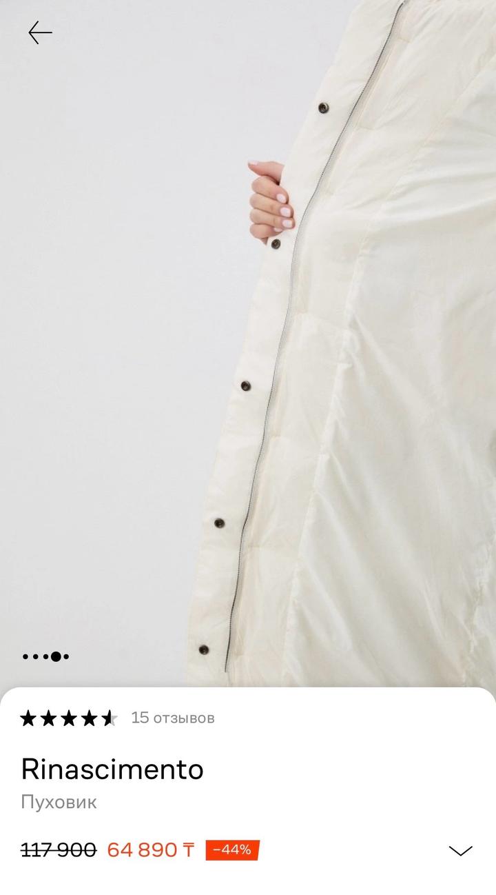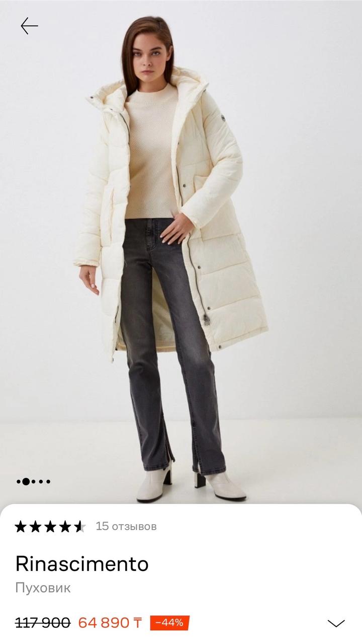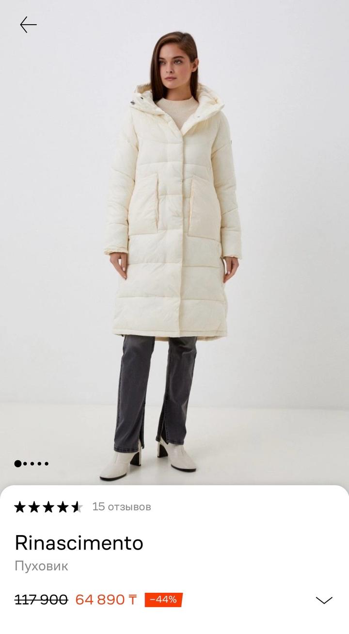 Продам белый пуховик итальянского бренда Rinascimento, после химчистки, в хорошем состоянии, размер - М, чуть ниже колен Артикул: 577170