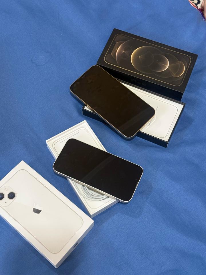 Iphone 13 - 128gb - акб 86%. гнутый немного из за этого не работает задняя камера и вспышка, не скрывался, не был в ремонте остальное все работает. Коробка, кабель все есть Iphone 12 pro max - 128 gb - акб 79%, разбит задняя стекло, остальное все работает. Коробка, кабель все есть Артикул: 577180