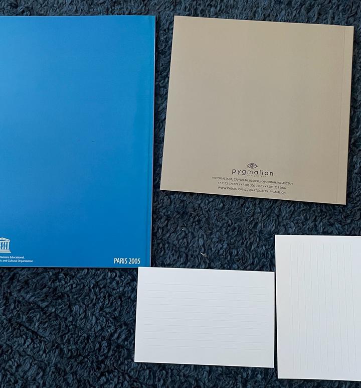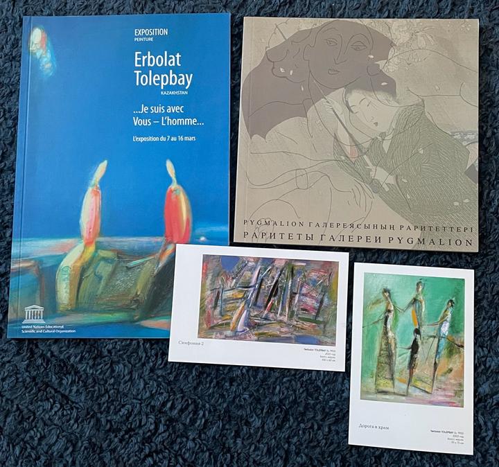 Каталоги художественных выставок в отличном состоянии: 1. Ерболат Толепбай (Erbolat Tolepbay). Каталог выставки в Париже (UNESCO), 2005 год. Редкое издание на французском и английском языках с репродукциями работ мастера. 2. «Раритеты галереи Пигмалион». Каталог собрания одной из ведущих художественных галерей Казахстана. Высокое качество печати. +2 открытки Артикул: 577214