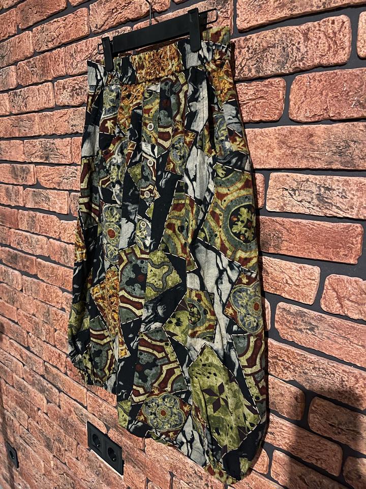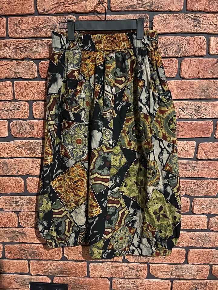 Цветная миди-юбка. Натуральный хлопок, удобные глубокие карманы. Впереди декоративные пуговицы. Пояс на резинке. Внизу на подоле по бокам - собрана резинками для создания трендового О-силуэта. Новая, не носилась ни разу. Артикул: 577240