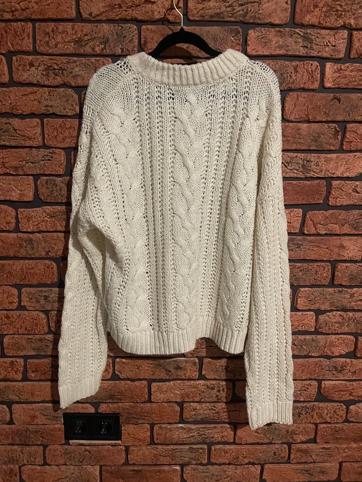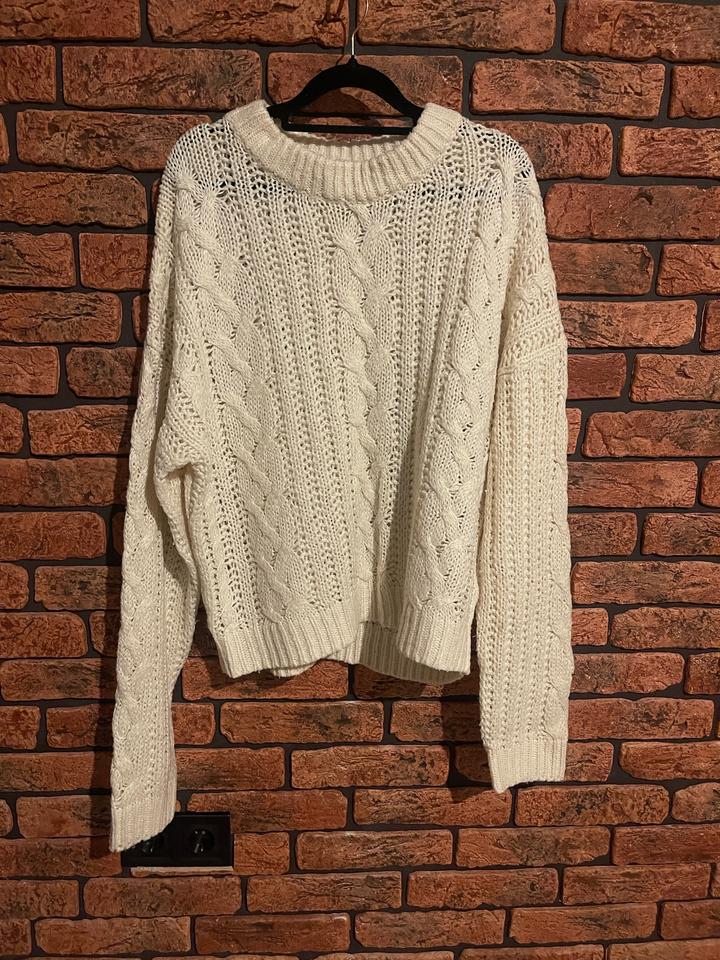 Белый свитер Amisu, красивая аккуратная вязка. Материал - акрил, не сядет и не растянется. На S, М небольшой оверсайз. Новый. Артикул: 577290