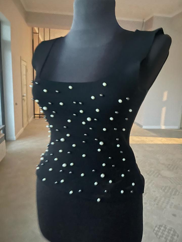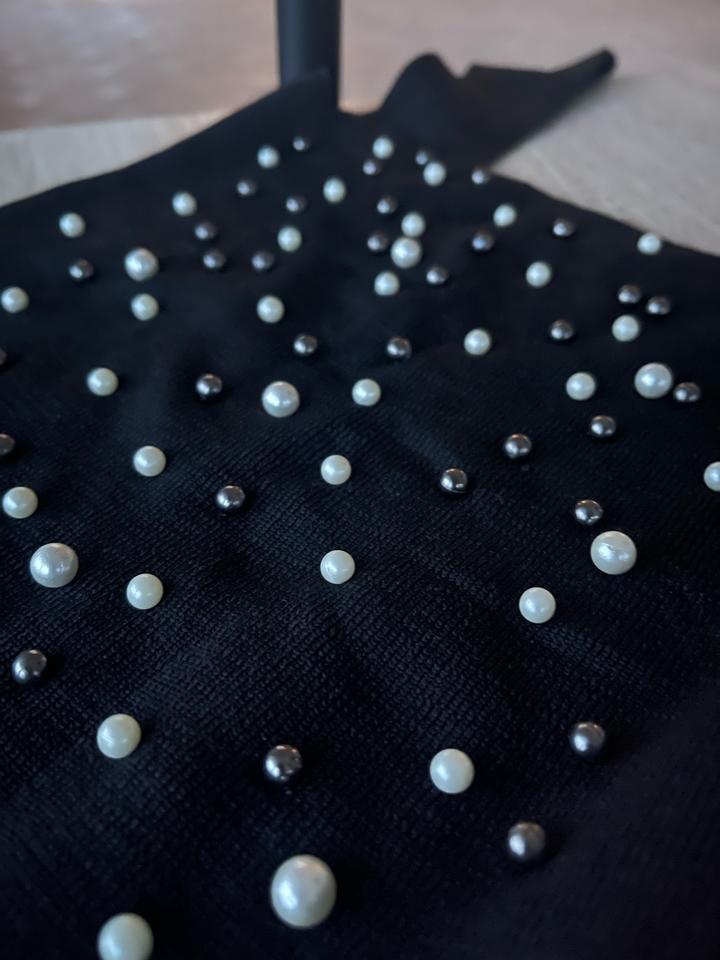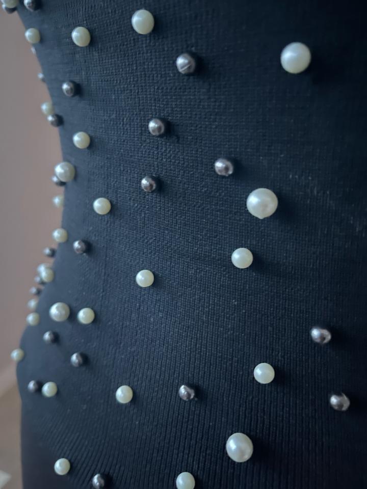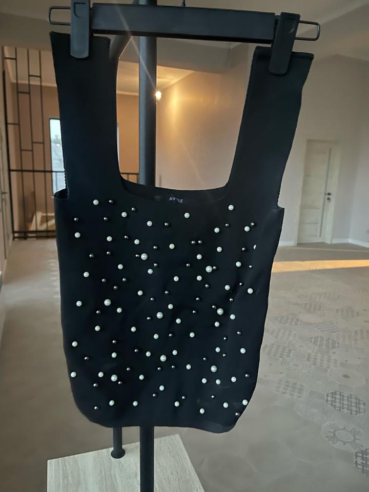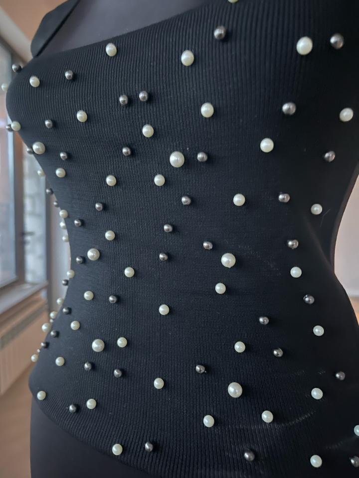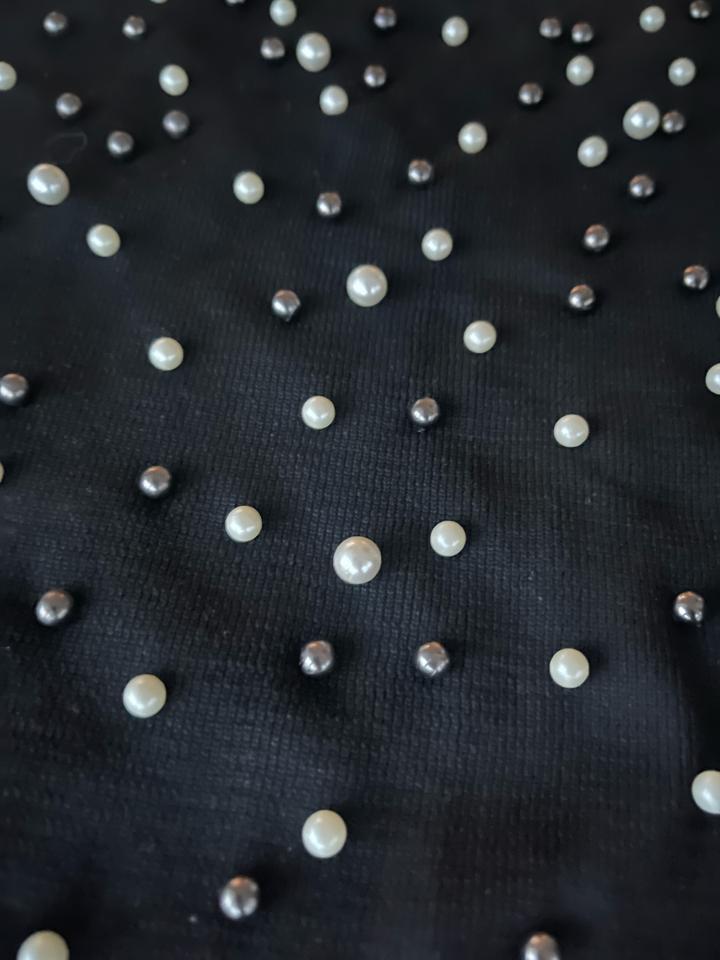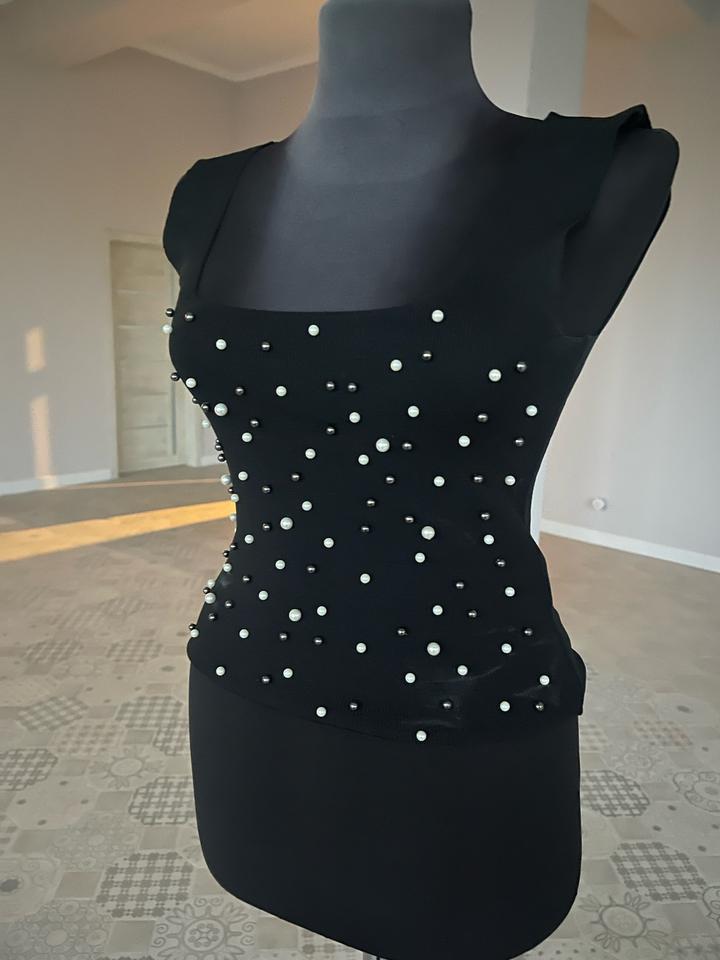 Топ для вечерних и повседневных кэжуал образов. Мягкий тактильно приятный трикотаж, отлично тянется. Расшит (только впереди) белым и черным жемчугом разного размера. Ни разу не носился Артикул: 577332