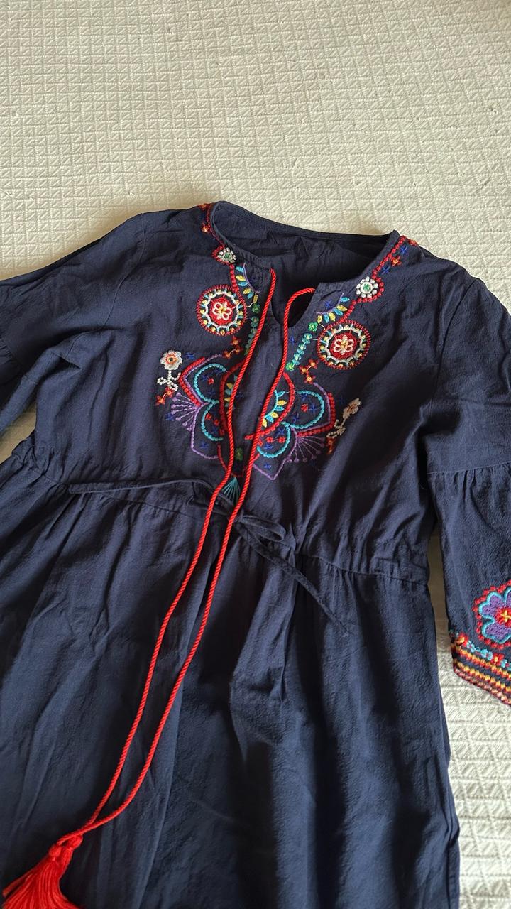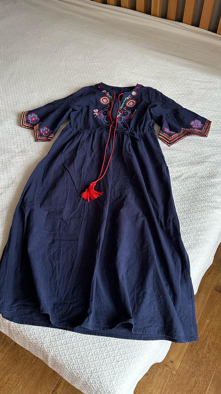 Винтажное платье синее с вышивкой. На s-m Артикул: 577333
