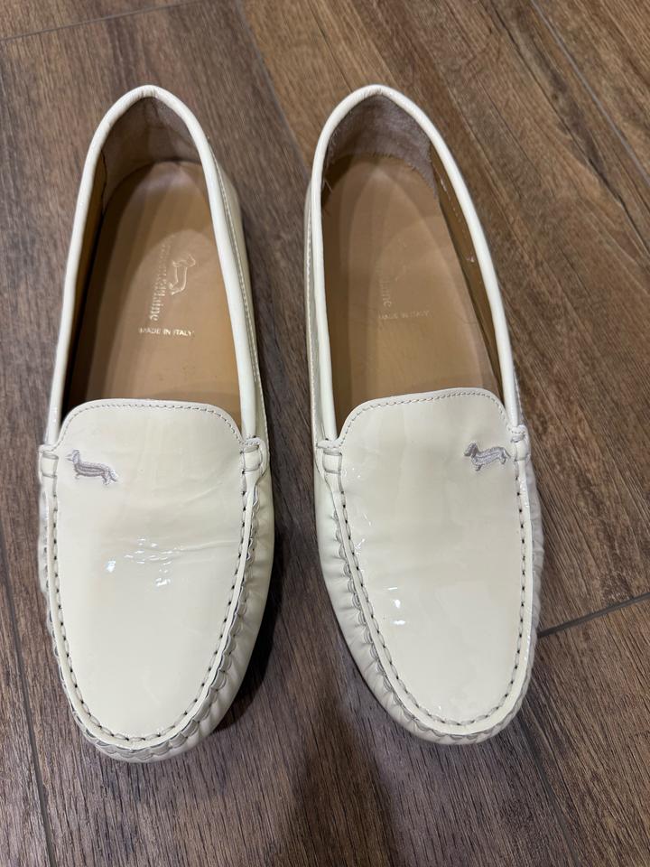 Мокасины из лаковой натуральной кожи ,были белыми ,немного со временем цвет поменялся ,а так в идеальном состоянии,размер 39 ,оригинал Артикул: 577435