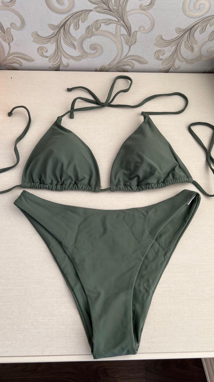 Здравствуйте! Продаю Новый купальник бикини. Размер М. Бюст хорошо прикрывает и удерживает грудь 2-3 размера. Плавки сзади немного шире переда (попа прикрыта) Купальник полностью сшит из одной ткани, так что подкладка не отличается и ничего не выворачивается. Настоящий цвет хаки на последнем фото. Подвеска тоже продается, смотрите в моих объявлениях. Артикул: 577460