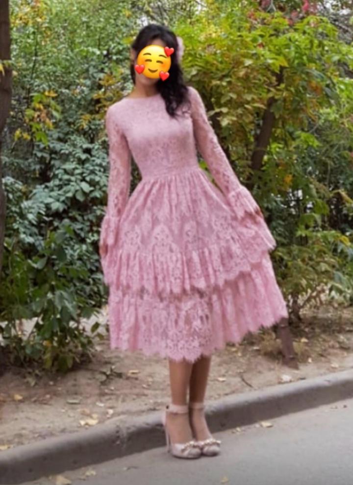 Красивое нежное розовое кружевное платье. Размер S. 10 000 тг Артикул: 577470