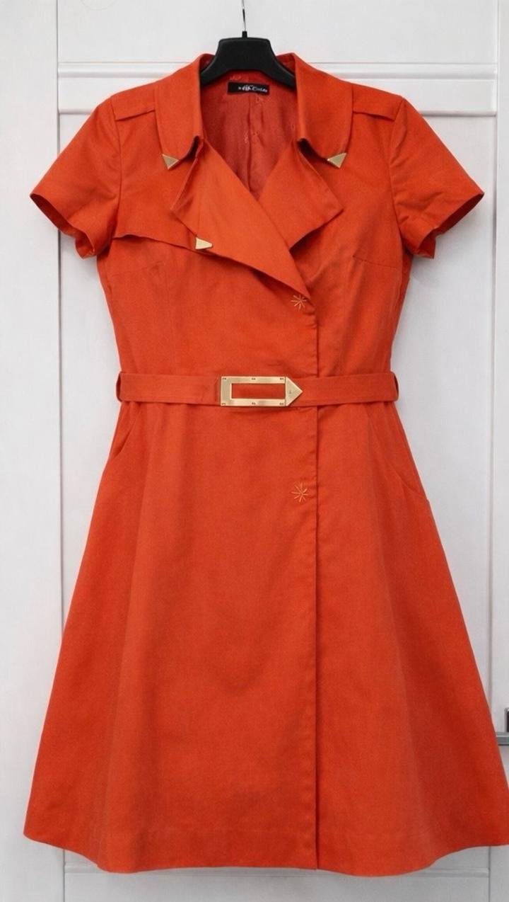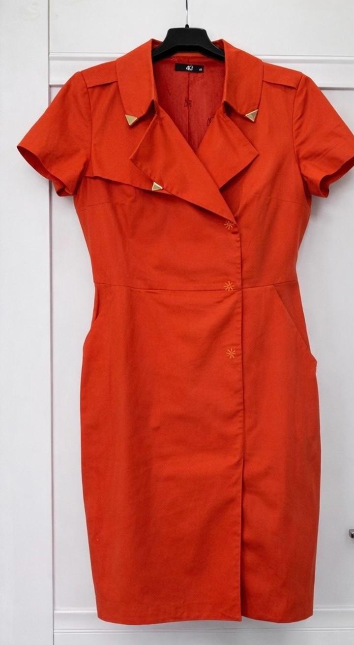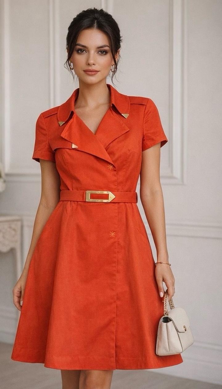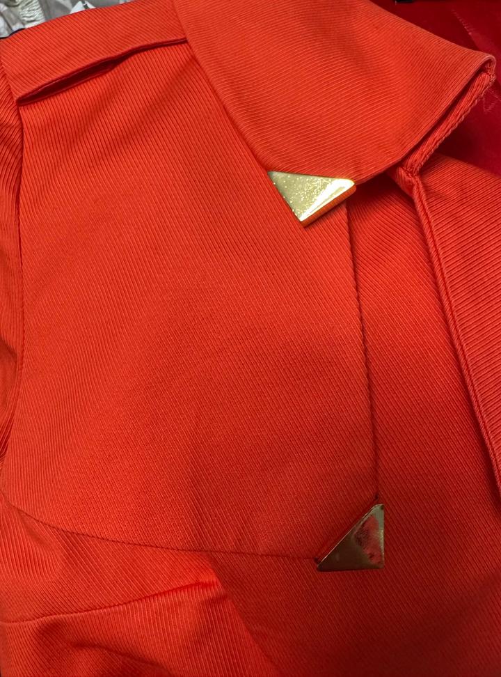 Эффектное платье в насыщенном оранжевом оттенке — вещь, которая сразу притягивает внимание и делает образ дорогим. Идеальная посадка по фигуре, подчёркнутая талия и элегантный крой с запахом создают женственный силуэт. Акцентный воротник с золотыми деталями и пояс — как из премиум-коллекции. — Оригинал: 4G by Gizia — Посадка: приталенная, стройнит — Длина: до колена — Ткань: плотная, держит форму — Пояс в комплекте Артикул: 577476
