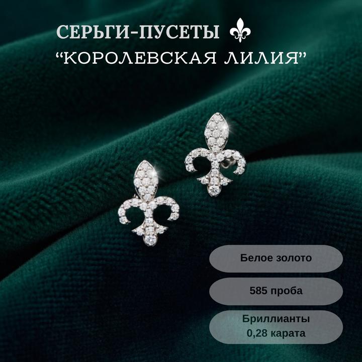 Серьги-пуссеты «Королевская лилия» с бриллиантами 0,28 ct Изысканное украшение в европейском нетрадиционном стиле — утончённый орнамент лепестка лилии, символа благородства и женственности. • Натуральные южноафриканские бриллианты (0,28 ct) — отличаются высокой прозрачностью, чистотой и яркой игрой света благодаря природным условиям формирования и строгому контролю добычи • Золото 585 пробы • Ручная ювелирная работа (Турция) • Авторский дизайн В комплекте Сертификат качества Артикул: 577521