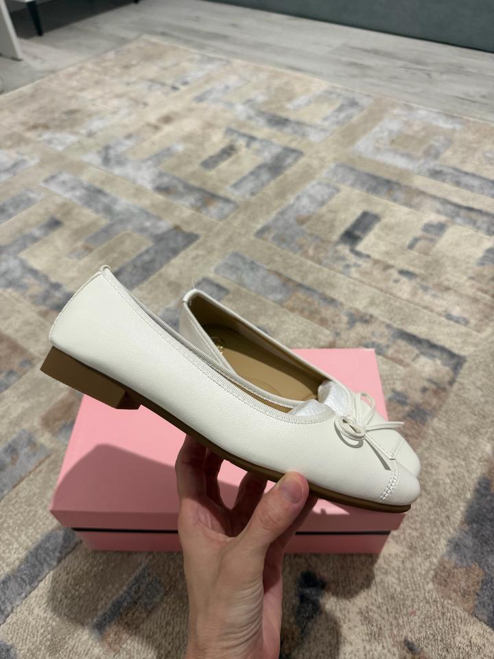 Белые балетки из эко кожи. Подойдут на узкую ножку. Артикул: 577539