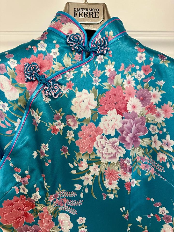 Состав: Шелк 100% Классическое китайское женское платье. Материал — шёлк, разрезы по бокам. Длина — средняя. Платье имеет плотный, качественный подклад, поэтому не просвечивает и отлично держит форму. Традиционный воротник-стойка и застежки и потайная застежка на молнии сбоку. Платье имеет сплошной цветочный принт и короткий рукав. Артикул: 577685