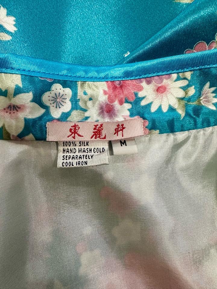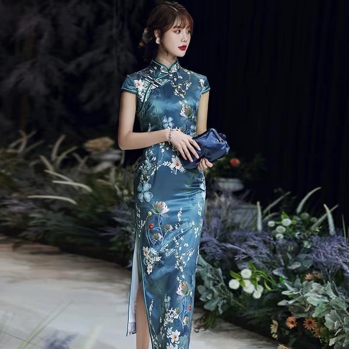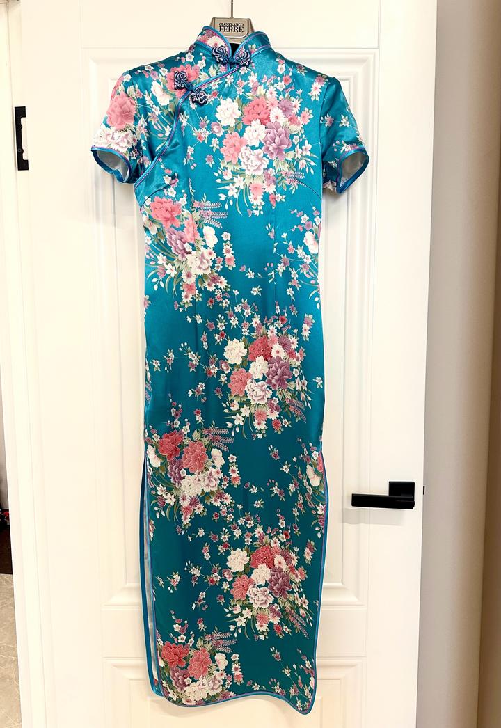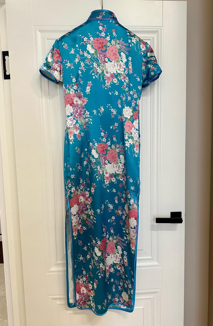 Шелковое платье ципао голубого цвета в китайском стилеXS