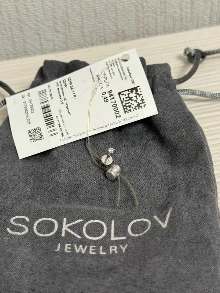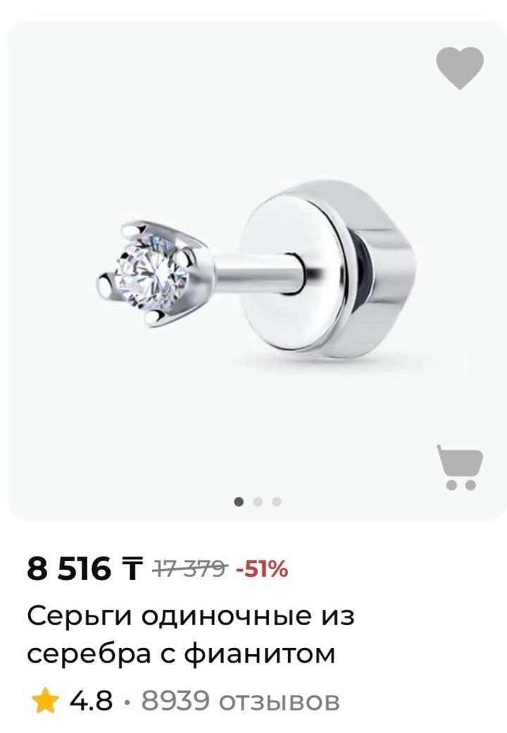 Серьга одиночная из серебра с фианитом . Артикул: 577692