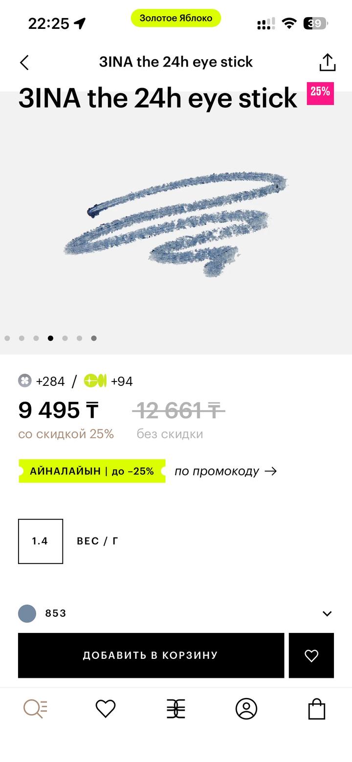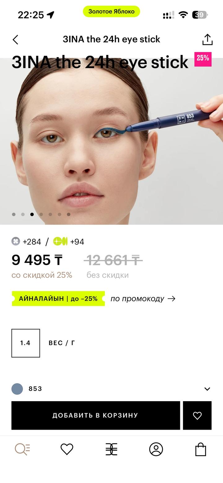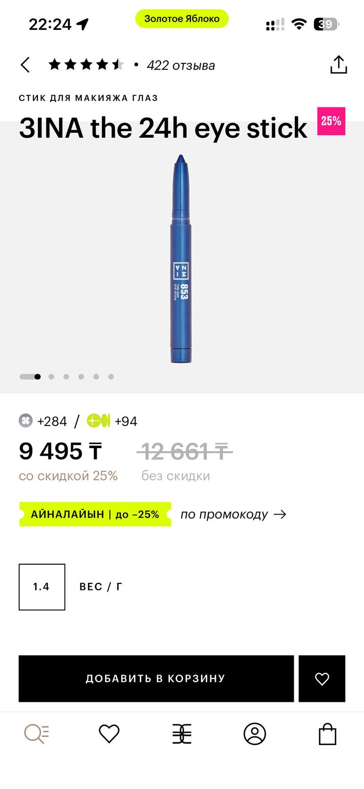 Стик для глаз 3INA, в оттенке 853, покупала в ЗЯ Отличный пигмент, есть легкий блеск Почти не пользовалась, остаток как на фото 5 Артикул: 577732