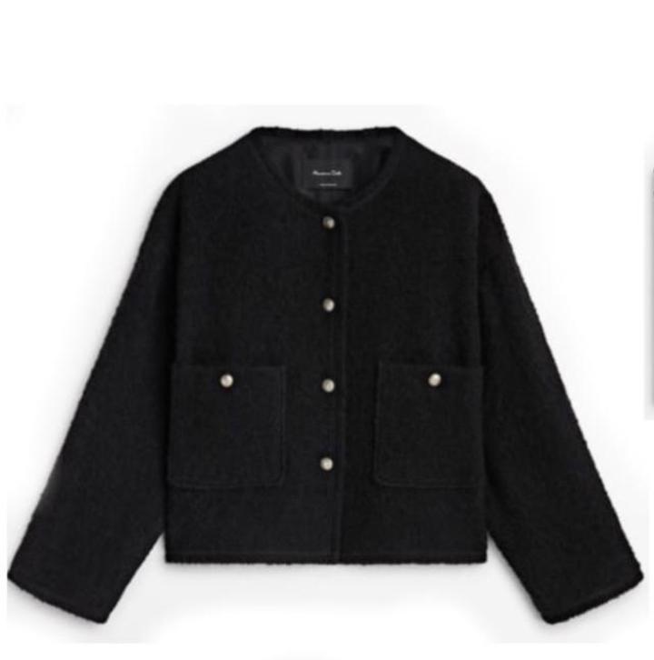 Короткая куртка из шерсти Massimo Dutti. Размер М. Цвет черный Артикул: 577893