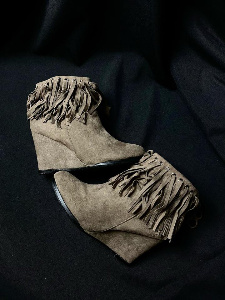 Fringe Wedge Ankle Boots37
