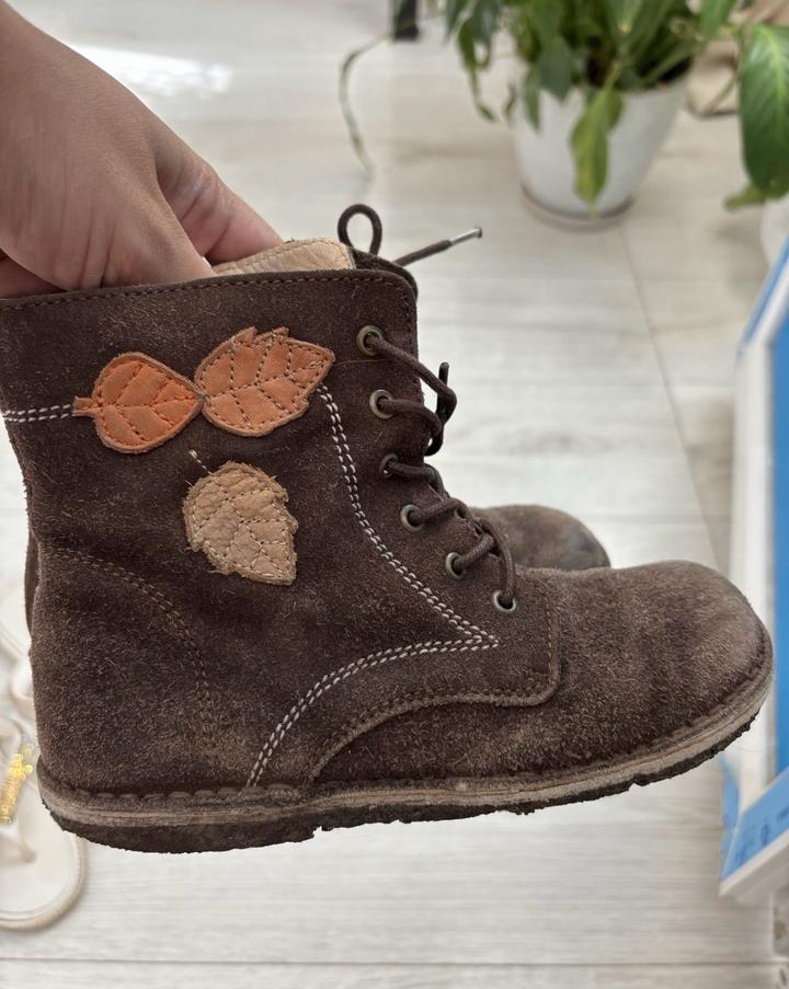 Производство Италия замша и внутри целиком натуральная кожа а также декорированы листочками из кожи 30 размер на замочке шнурки кожаные целые абсолютно подошва манка Артикул: 577964