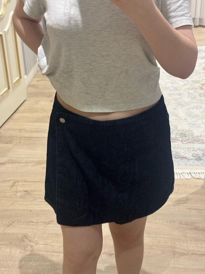 Юбка почти новая 1 раз носила и размер не L я укоротила пояс сейчас размер М и есть дефект, место пуговицы изменила чтобы идеально сели но его не видно) Артикул: 577968