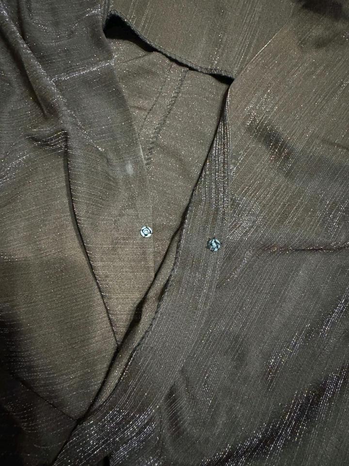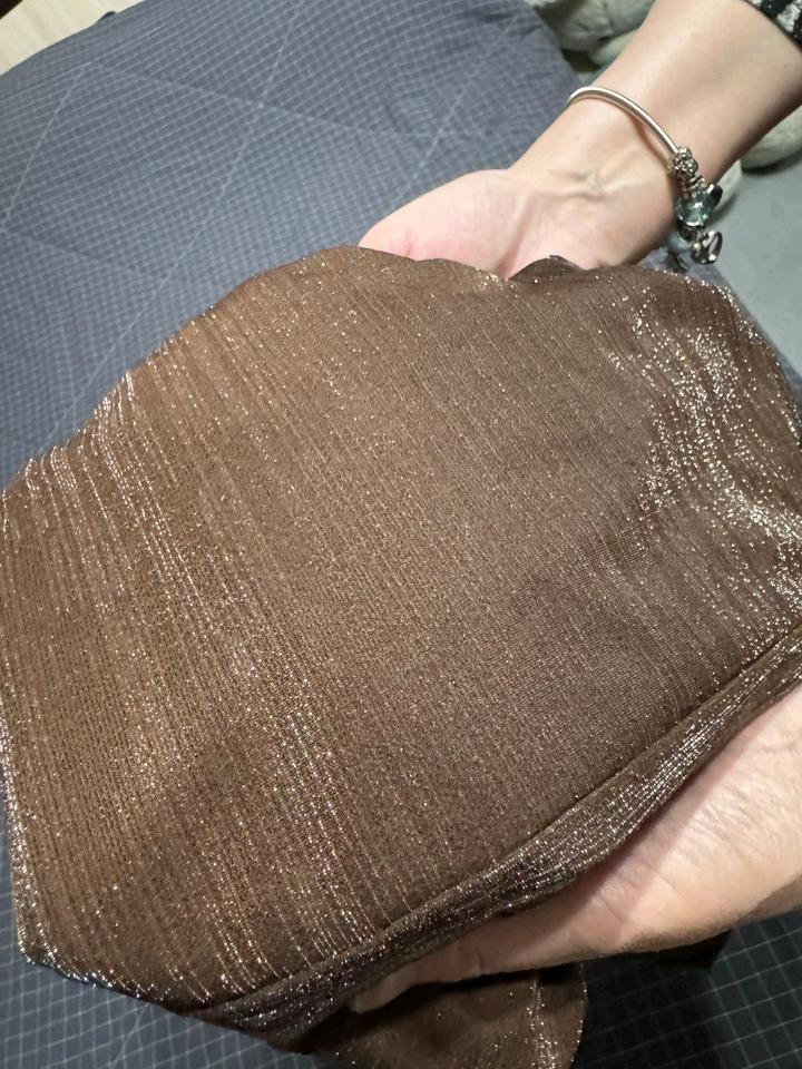 Сшит на заказ. Ткань плотный песок, красивый шоколадный цвет с серебристыми прожилками. Без подклада. Артикул: 578069
