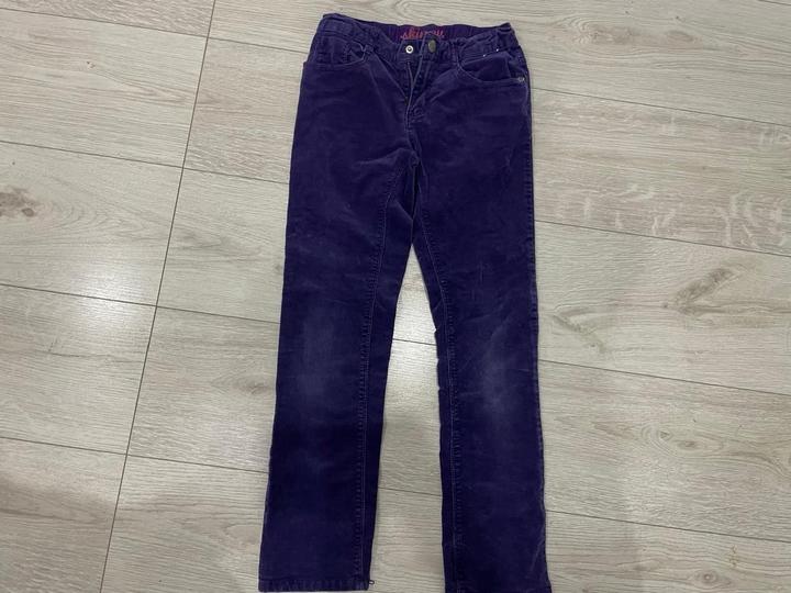 Теплые и мягкие брючки фиолетового цвета приглушеного оттенка 122-128 примерно прямого кроя средней посадки Артикул: 578091