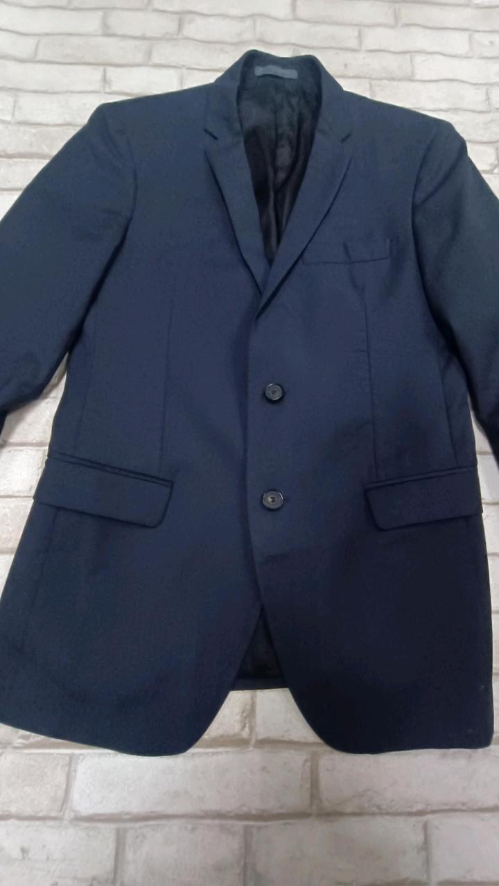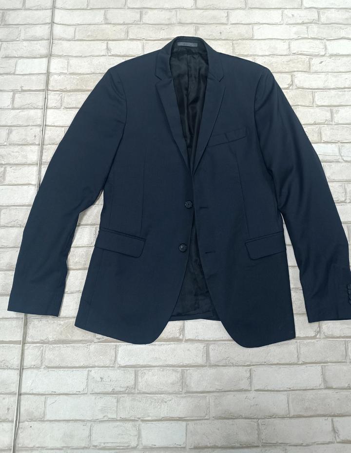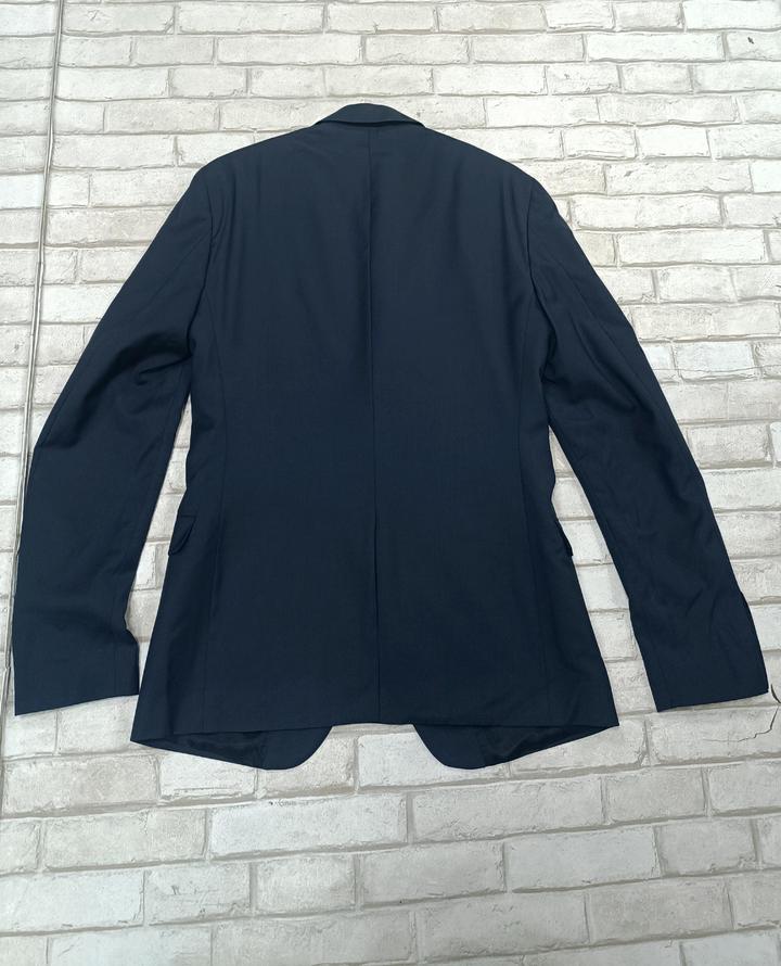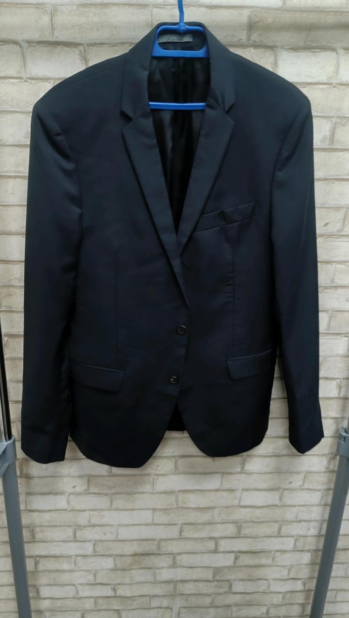 Мужской тёмно синий пиджак . 100% - шерсть, Подклад - вискоза, ацетат . Из минусов: отсутствует пуговица на внутреннем кармане , и нашивка внутри надпись "Super 110S". Артикул: 578099