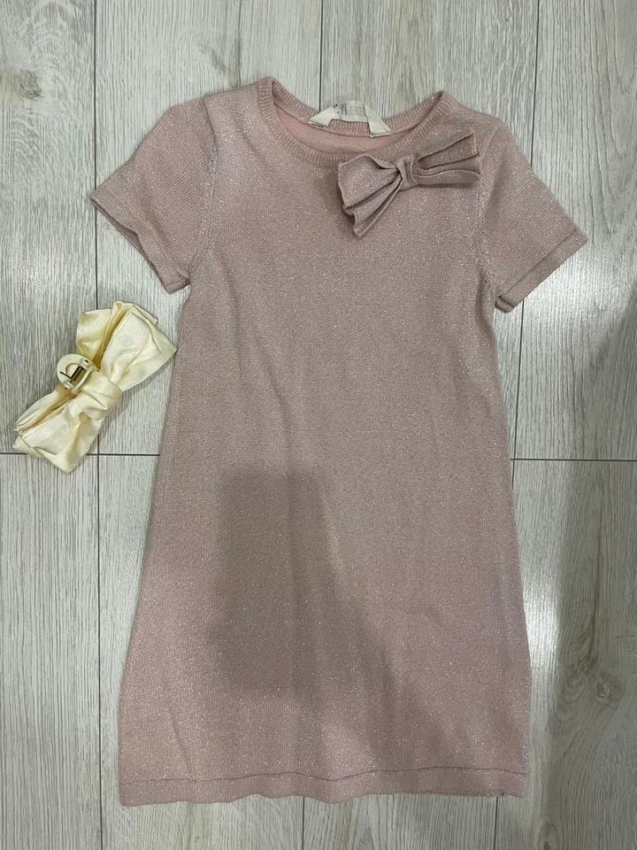 Платье прямого кроя с бантом нежно розовое с люрексом Артикул: 578106